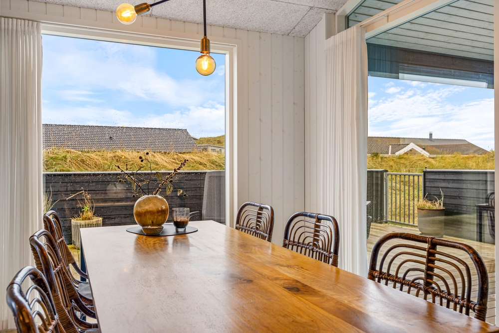Feriehusets beliggenhed er super strandnær. I skal kun gå 250 meter, og så har I Vesterhavet foran jer. Her er den perfekte mulighed for at nyde naturen og tage lange ture langs havet. Nyd derfor mange gåture med hele familien her! Lyt til Vesterhavets brusen og mærk den friske vind i jeres ansigt. Når I kommer tilbage efter en frisk gåtur ? så er der da ikke noget bedre, end en tur i saunaen eller ren afslapning foran brændeovnen.