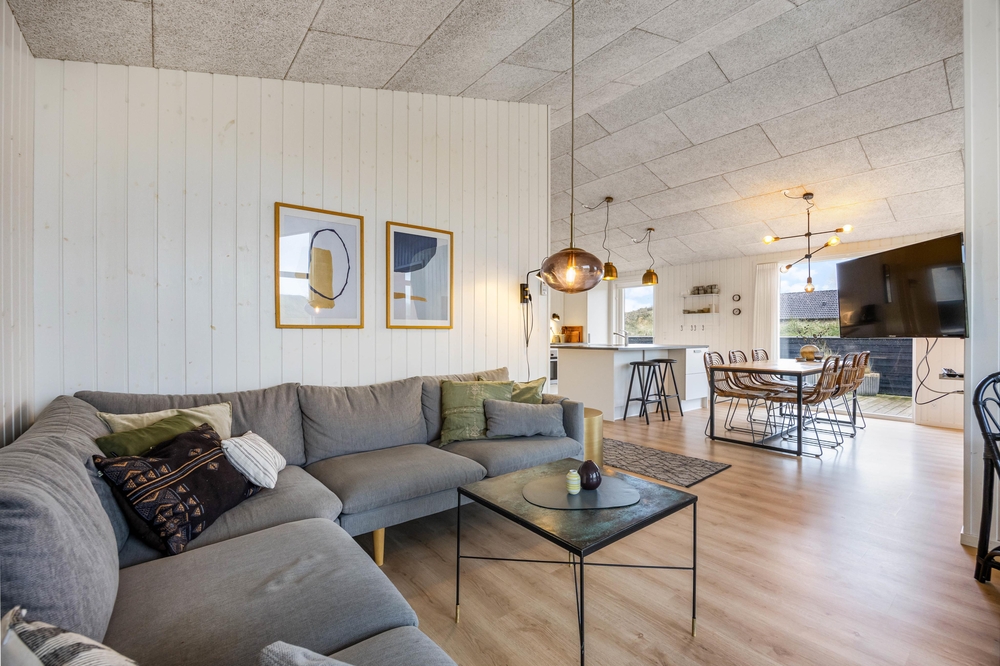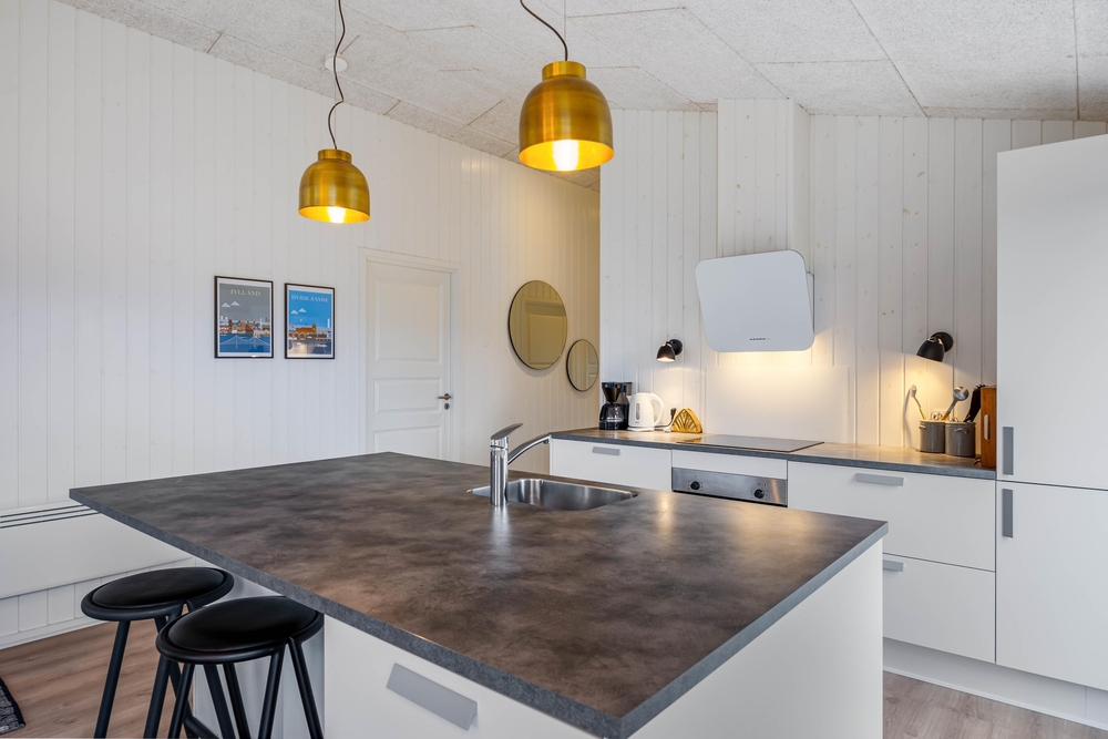 Stuen og køkkenet er husets hjerterum, hvor hele familien kan samles. Om I vil spille et sjovt spil, eller slænge jer i den lækre sofa foran brændeovnen, så er der rig mulighed for det.