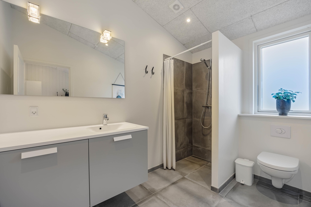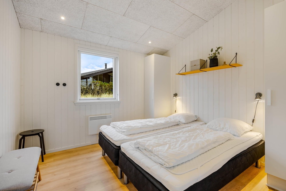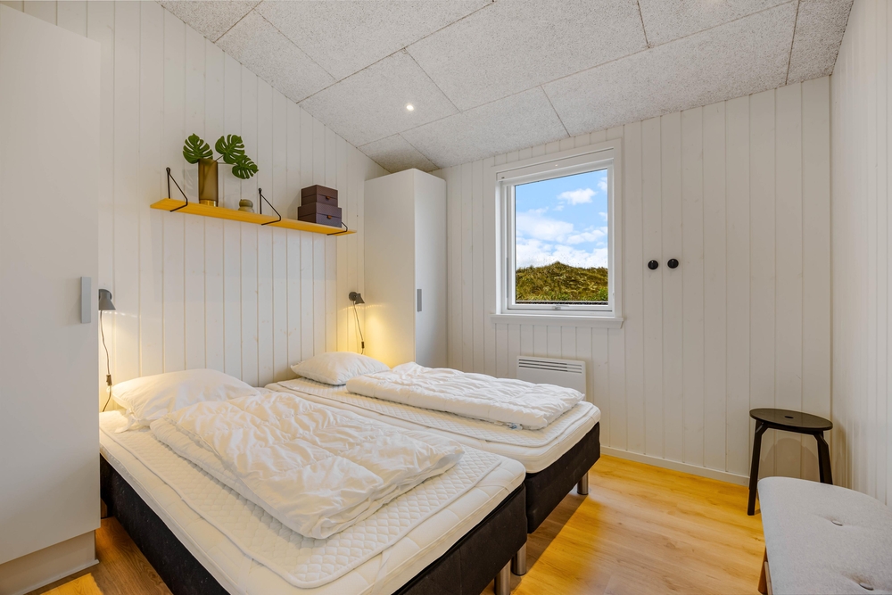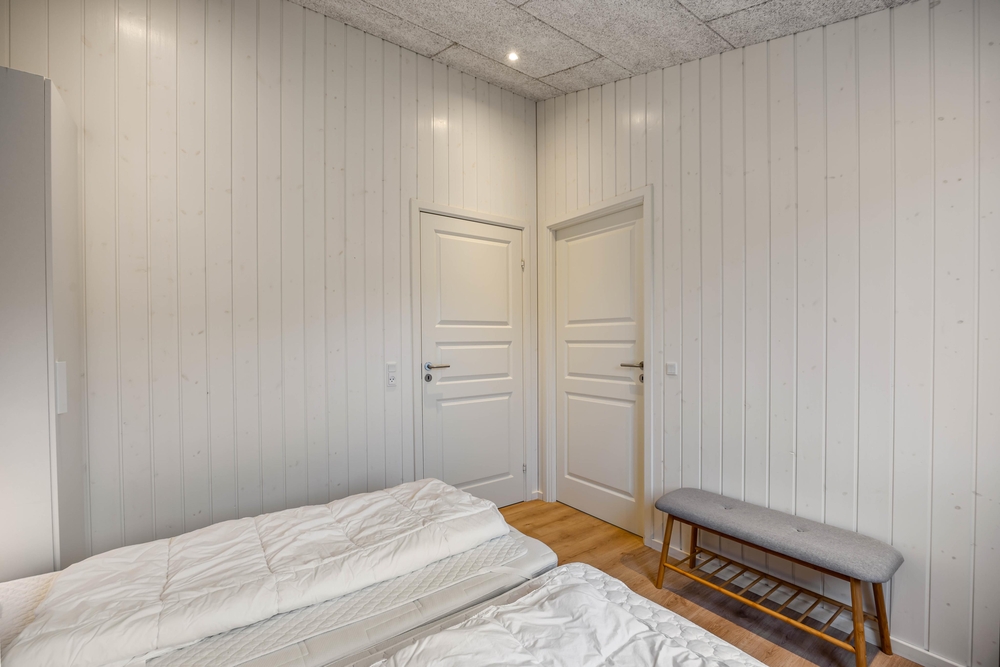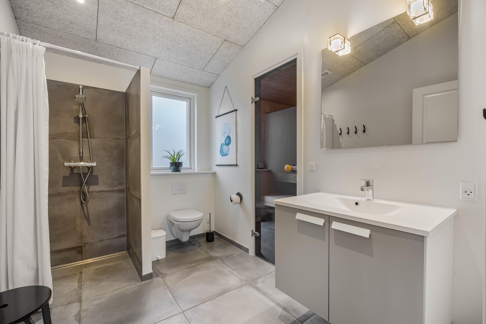 Der er skønne, lyse soverum med sovepladser til 6 personer. Derudover er der 2 lækre badeværelser, hvor der i det ene, også er adgang til en dejlig, varm sauna.