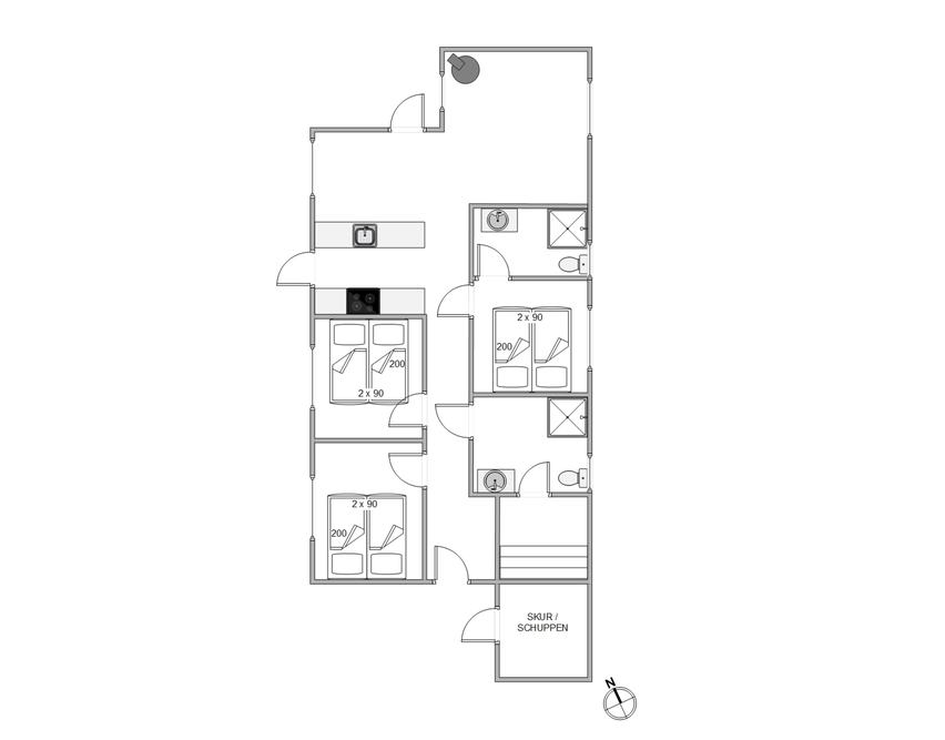 Ved sommerhuset er der en udebruser, som er rigtig dejlig efter en lang gåtur ved stranden med bare fødder i sandet. Udebruseren kan benyttes fra april til november.
