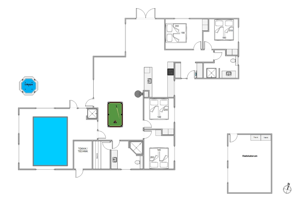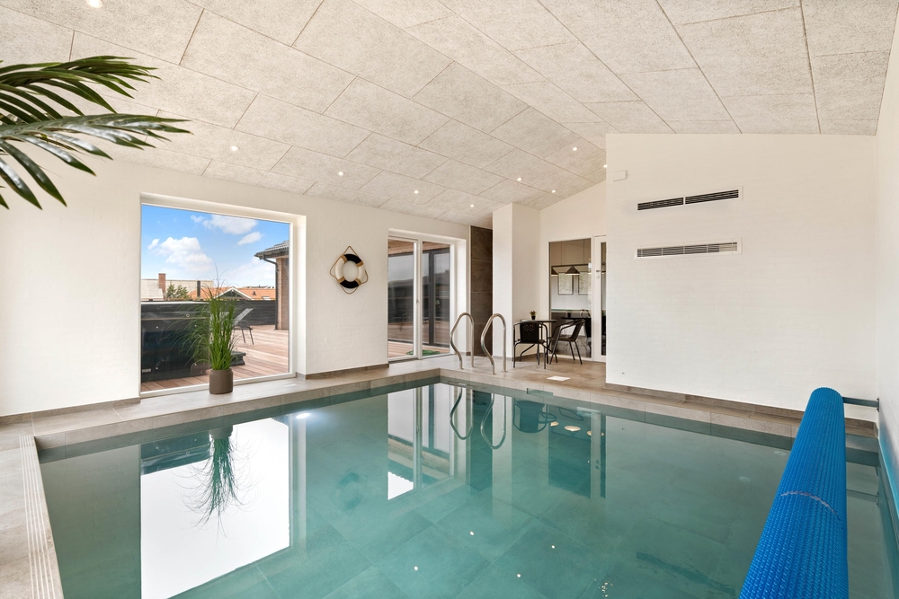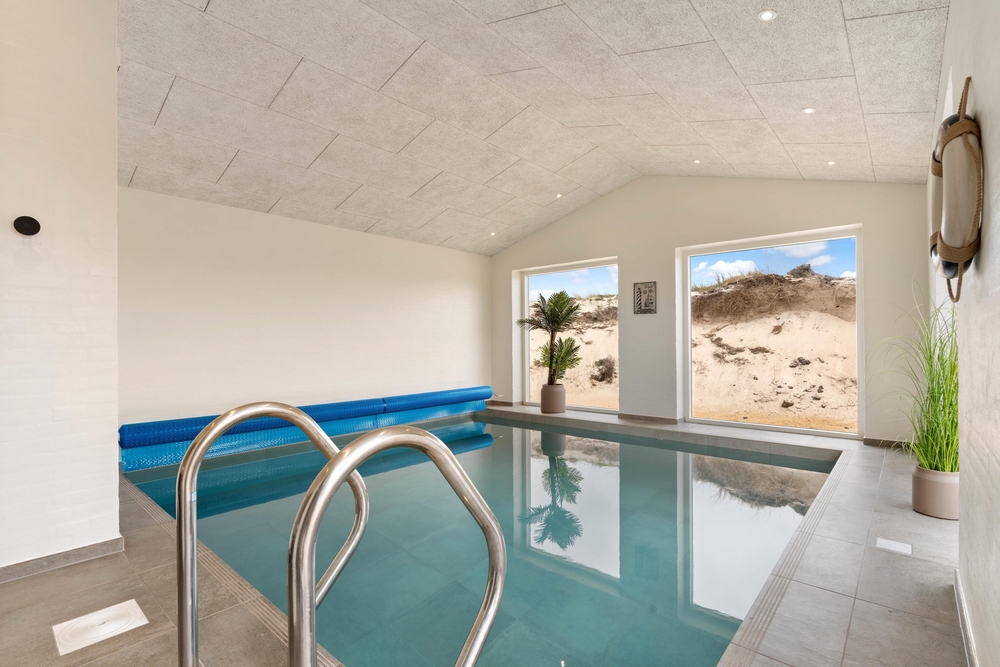 Et af sommerhusets absolutte highlights, er den super skønne pool-afdeling med svømmetræner. Her kan hele familien underholdes og more sig sammen. Tænd for saunaen efter en dejlig dag på stranden og nyd kroppen blive varmet godt igennem; skønt for både krop og sjæl.