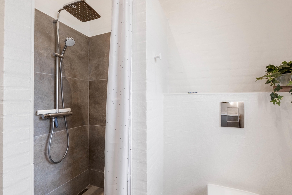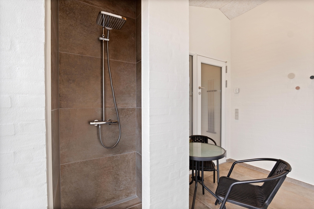 De fire soveværelser er opdelt i to afdelinger med fælles badeværelse til to værelser. På badeværelset finder I både vaskemaskine samt tørretumbler, så I er sikre på, at der er rene og tørre håndklæder til næste dag på stranden.