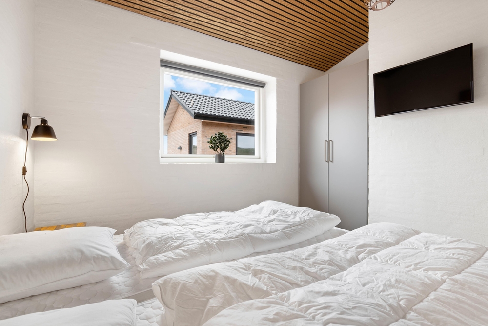 I feriehuset finder I 4 soveværelser ? alle med behagelig gulvvarme samt klinker. I alle værelser er der 180x200cm lækre dobbeltsenge, og her er moderne og lyst.