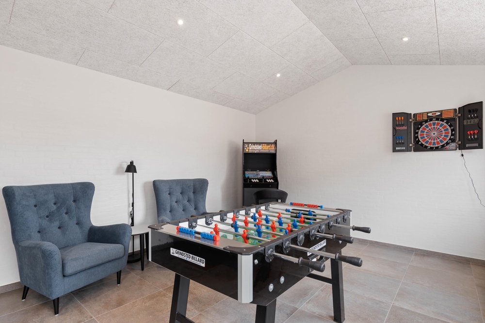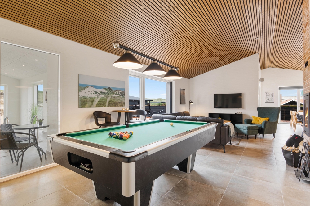 Dette skønne aktivitetssommerhus, bygget i 2022, byder på masser af aktiviteter og luksus, så hvis I søger dette, så tag et nærmere kig på feriehuset. Feriehuset er beliggende på en dejlig naturgrund og kun 200 meter fra Vesterhavet. Her er masser af frisk luft og højt til loftet.