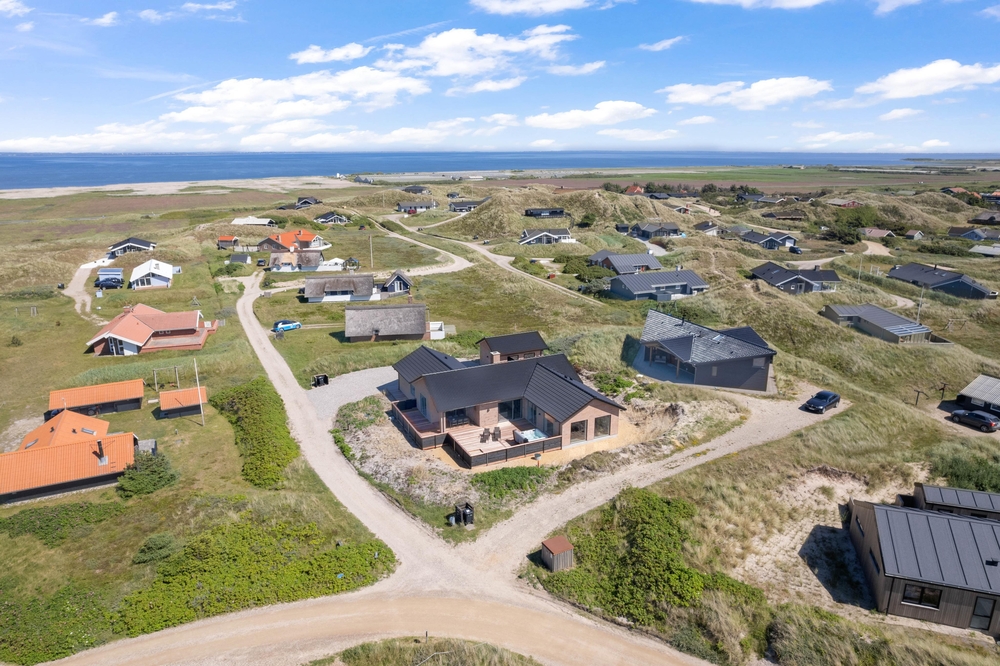 Sommerhuset er beliggende på en herlig naturgrund med meget kort afstand til det skønne Vesterhav. Her finder I Danmarks måske smukkeste og lækreste hvide sandstrand. Her kan hele familien tilbringe mange sjove og hyggelige timer. Byg sandslotte eller flyv med drager i den friske vestenvind.