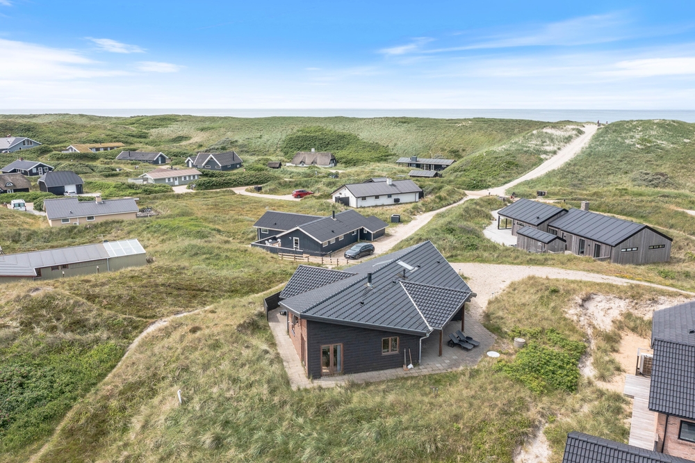 Et dejligt og velholdt feriehus beliggende på en kuperet klitgrund. Feriehuset er velegnet til familien, der sætter pris på afslapning med spa og sauna samt skønne omgivelser. Kun 150 meter er der til Vesterhavet, mens gode indkøbsmuligheder og caféer findes indenfor få km i Hvide Sande.