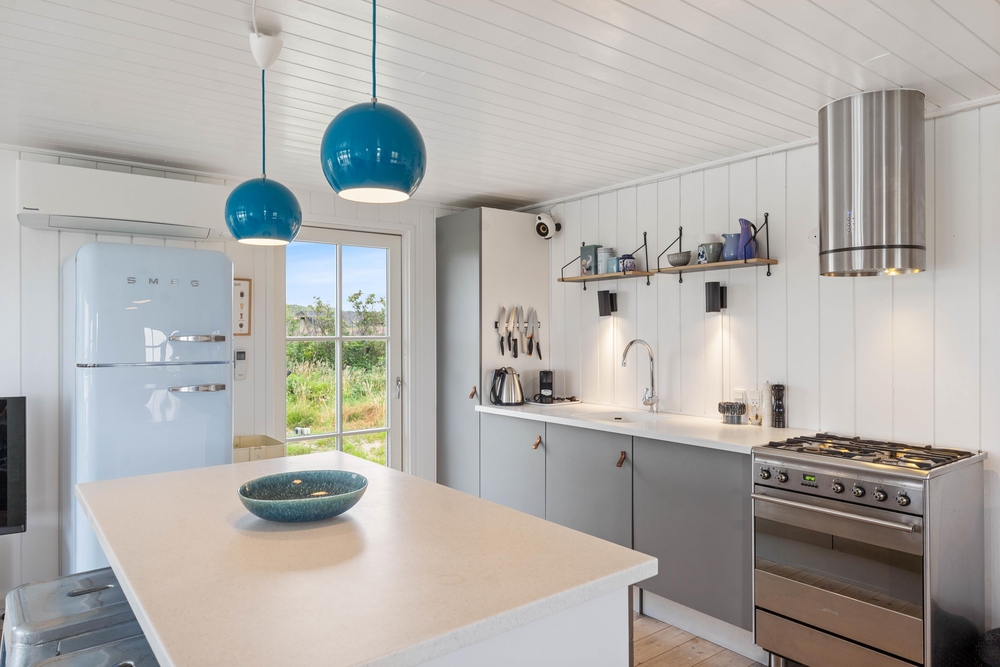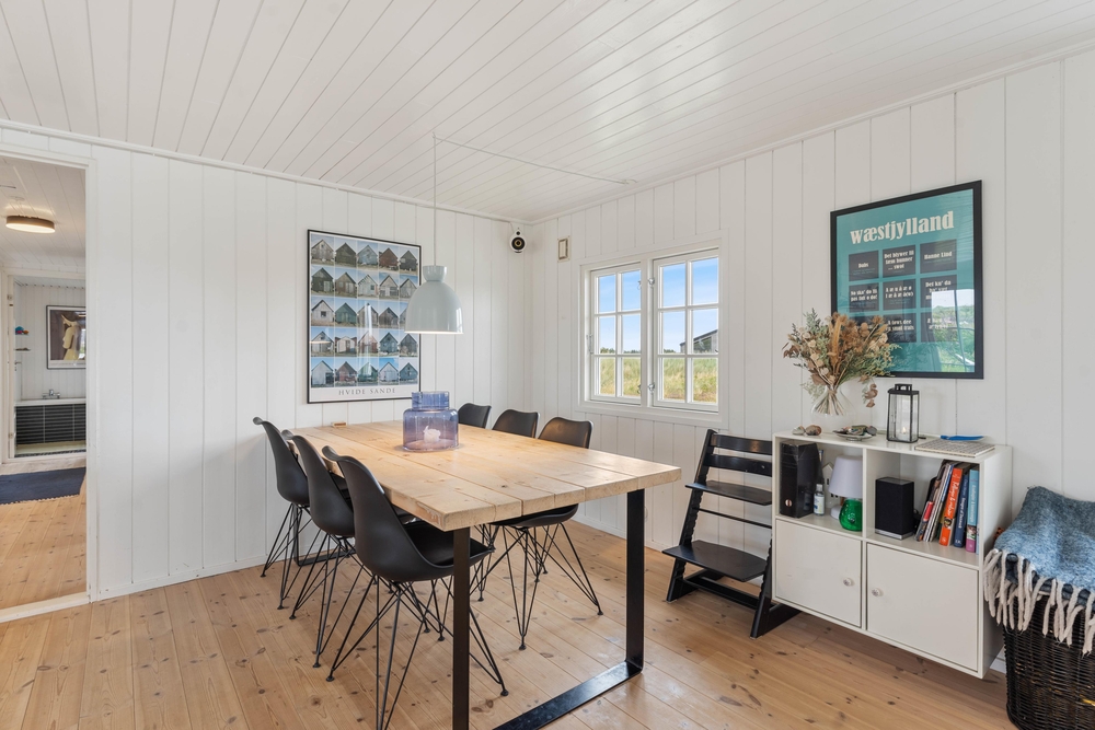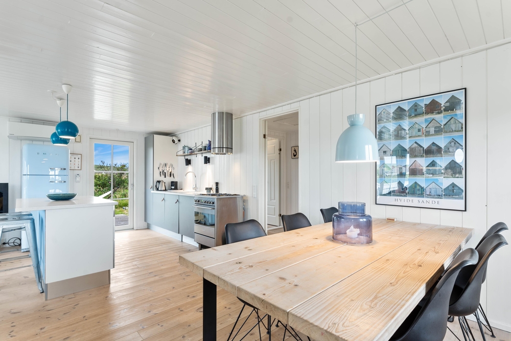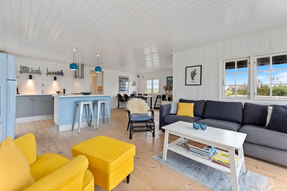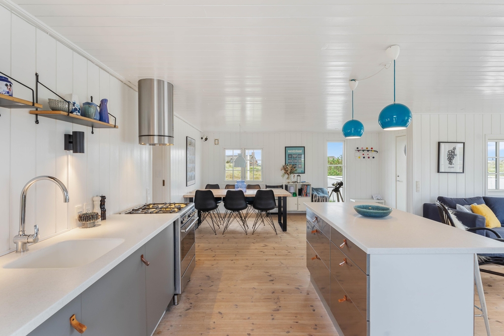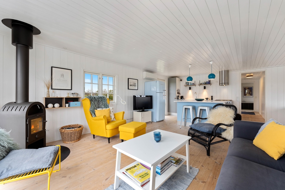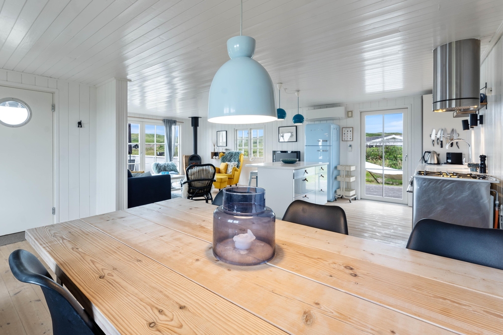Feriehuset er helt ideelt til en ferie, hvor samvær og hygge er i fokus. Det flot indrettede køkkenalrum giver god anledning til, at familien kan samles over madlavningen ved køkkenøen. I stuen kan der hygges med en god film, sjove spil og ild i brændeovnen. Sommerhuset er lyst og venligt med et flot lysindfald fra de store vinduespartier i stuen.