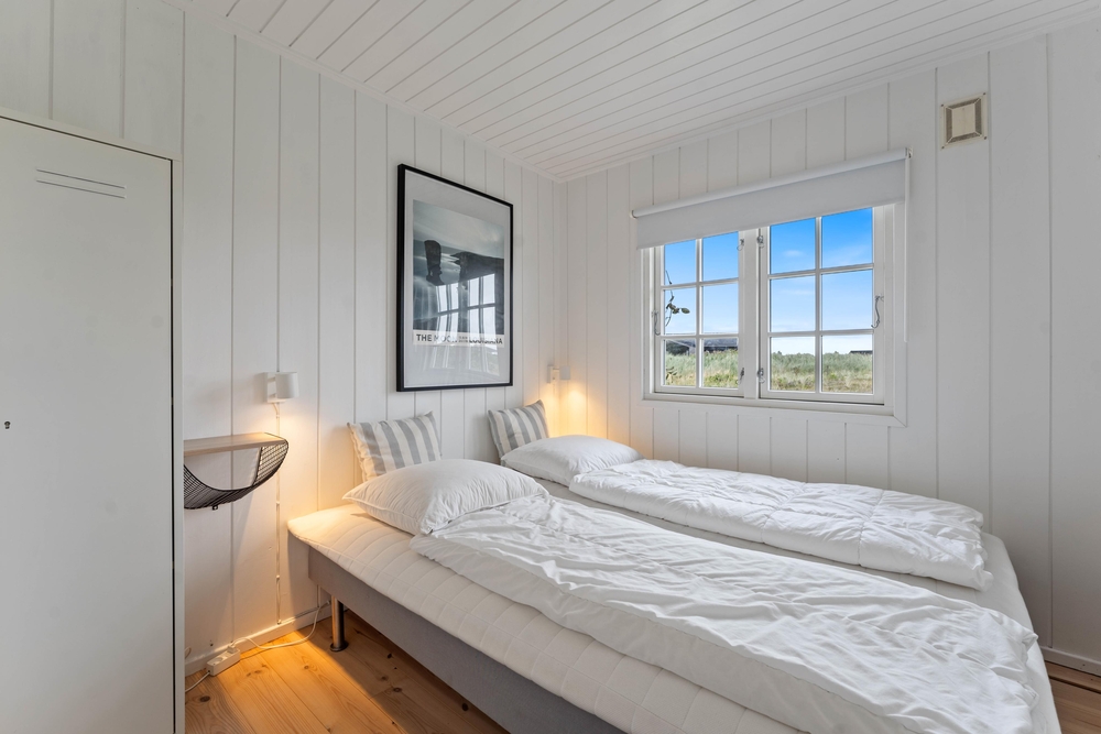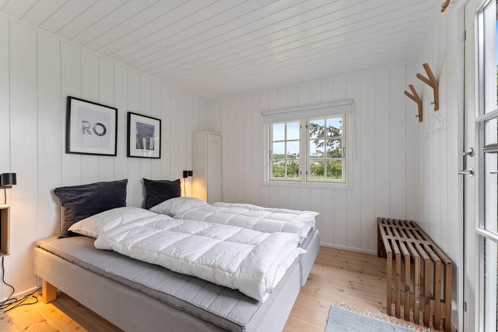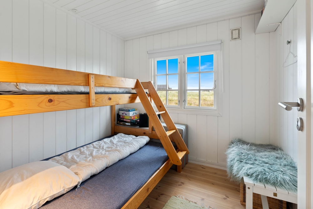 De 6 sovepladser er delt op på 3 værelser, 2 med dobbeltseng og det sidste med køjeseng.