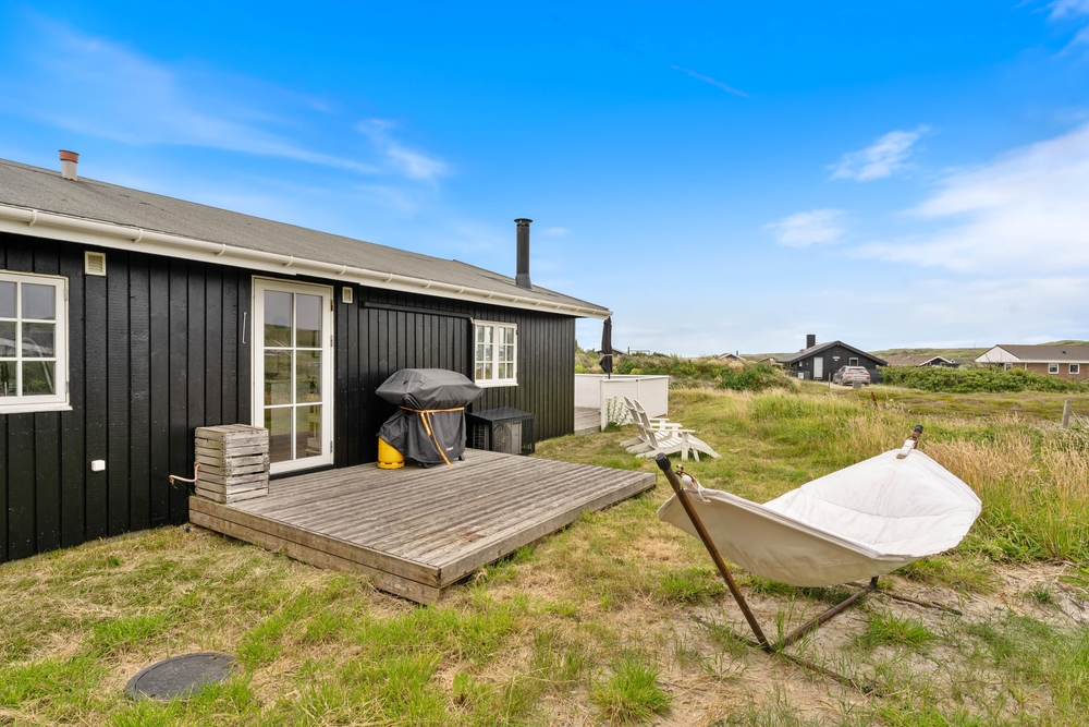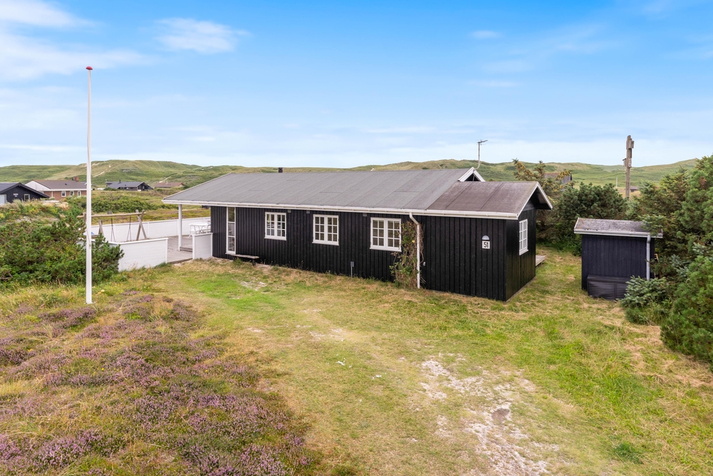 På en fantastisk naturgrund midt i det smukkeste hedelandskab finder I dette skønne feriehus til 6 personer. Feriehuset på Tingodden 51 er med sine 95 kvm. smukt indrettet overalt, og det byder desuden på mange praktiske faciliteter som fx brændeovn, varmepumpe og badekar. Med en beliggenhed blot 200 meter fra det brusende Vesterhav, har I de bedste forudsætninger for en perfekt ferie tæt ved vandet med familie og venner. Hund er også velkommen.