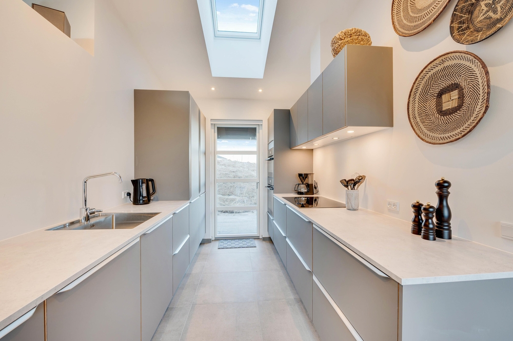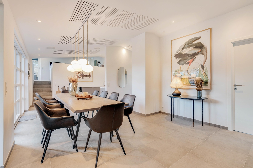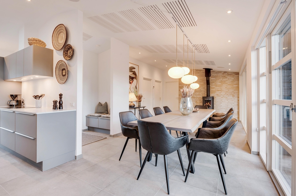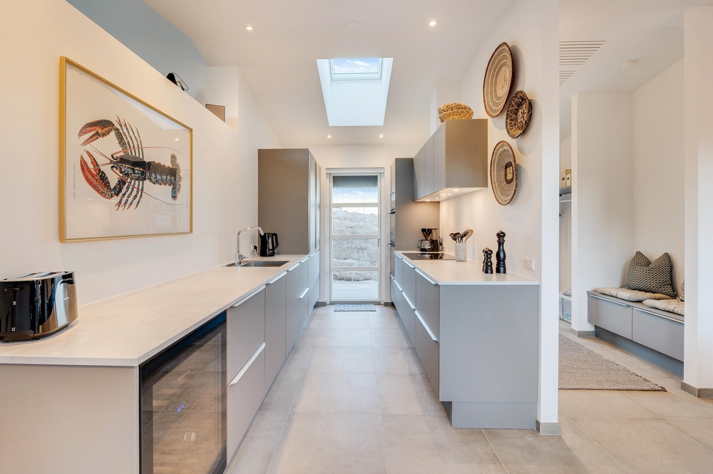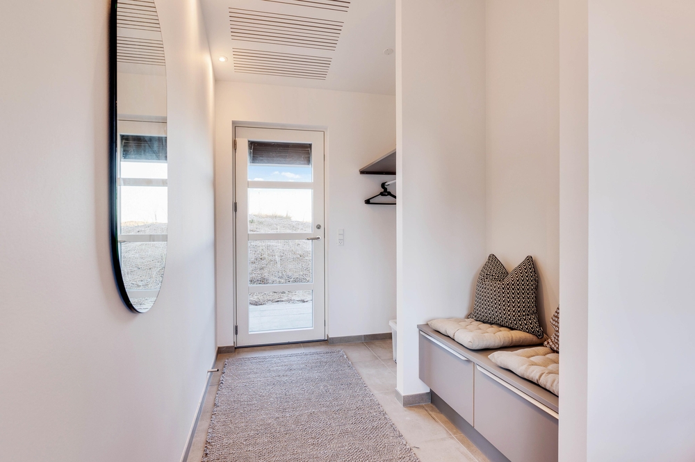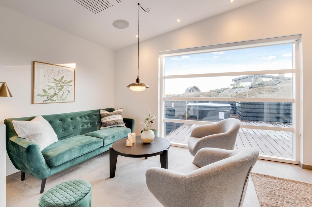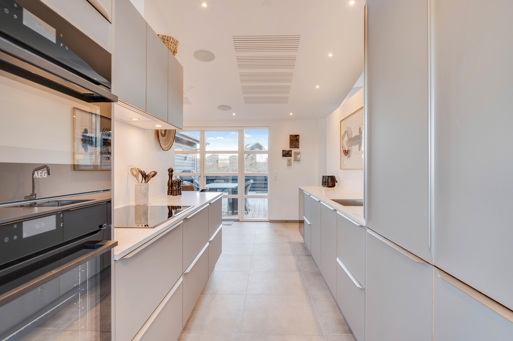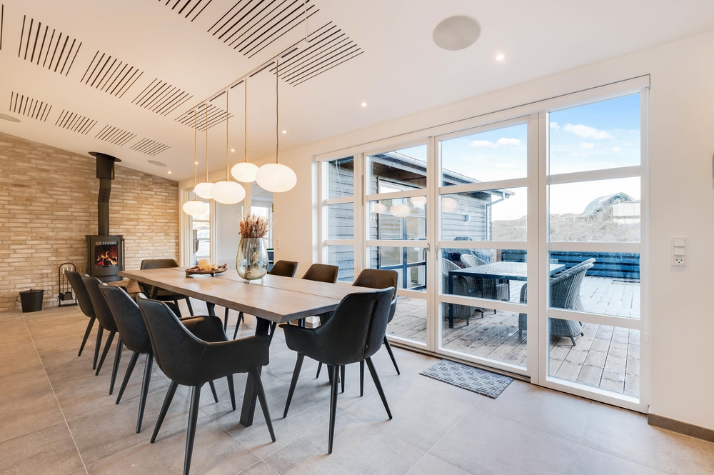 I sommerhusets indre er intet overladt til tilfældighederne. Den moderne og stilfulde indretning i flotte kvalitetsmaterialer sætter de helt perfekte rammer om den luksuriøse ferie.