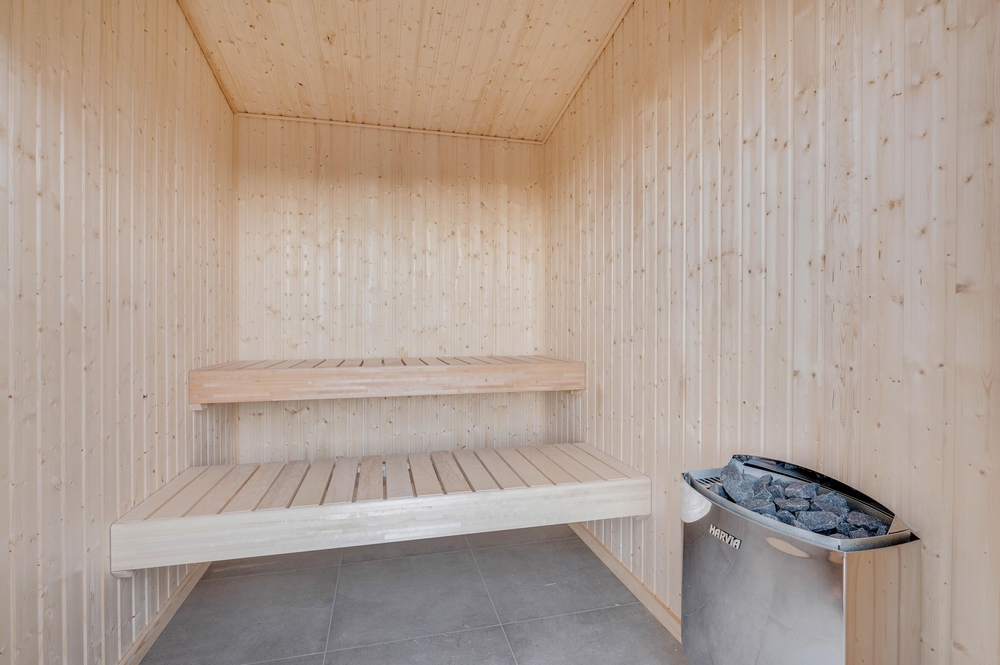 Her venter jer de skønneste wellnessoplevelser i sommerhusets udesauna såvel som den store udendørs spa på terrassen. Der er altså i den grad lagt op til, at I kan nyde de naturskønne omgivelser i fulde drag. Sommerhuset byder også på en udebruser, som er tilgængelig fra april til november.