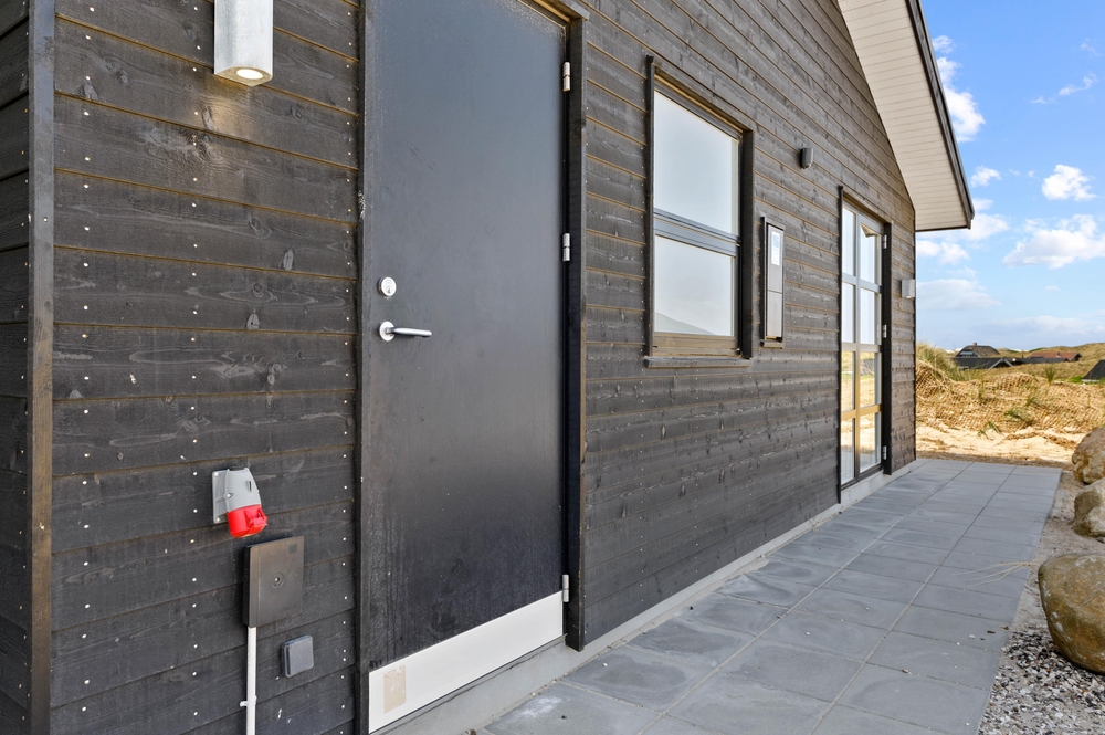 På terrassen er der en udendørs bruser, så I kan skylle tæerne fri af sand efter en tur til stranden, og til de yngste feriegæster er der en sandkasse på grunden.