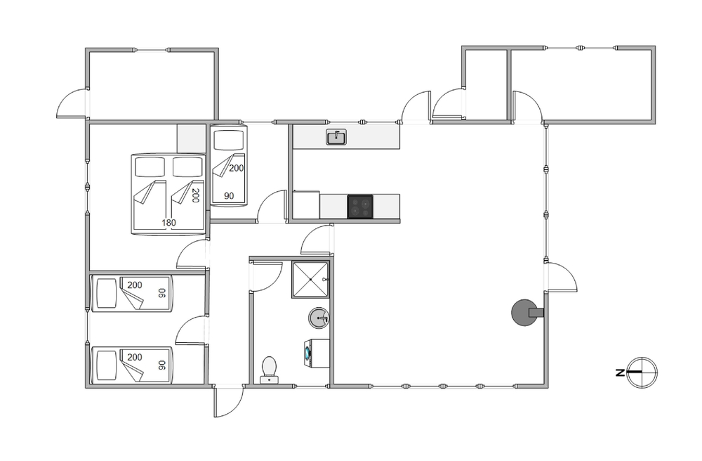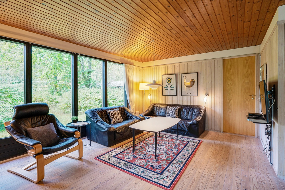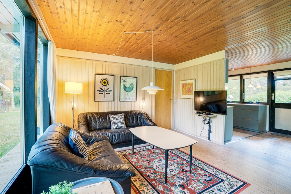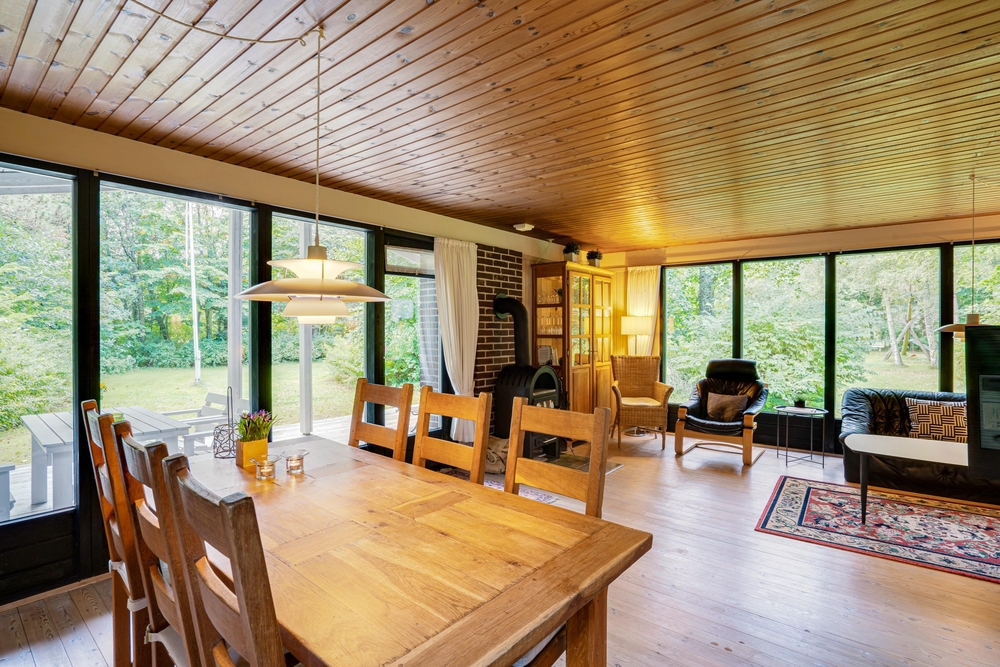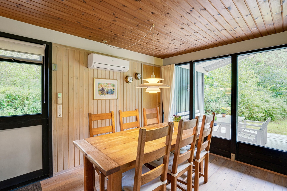 Jeres samlingspunkt i sommerhuset bliver utvivlsomt alrummet, hvor køkken, stue og spiseplads er samlet i ét rum. Her kan I tilbringe mange dejlige feriestunder sammen med madlavning, spil og film. Centralt i alrummet står brændeovnen, der spreder hyggelig stemning og varme i rummet.