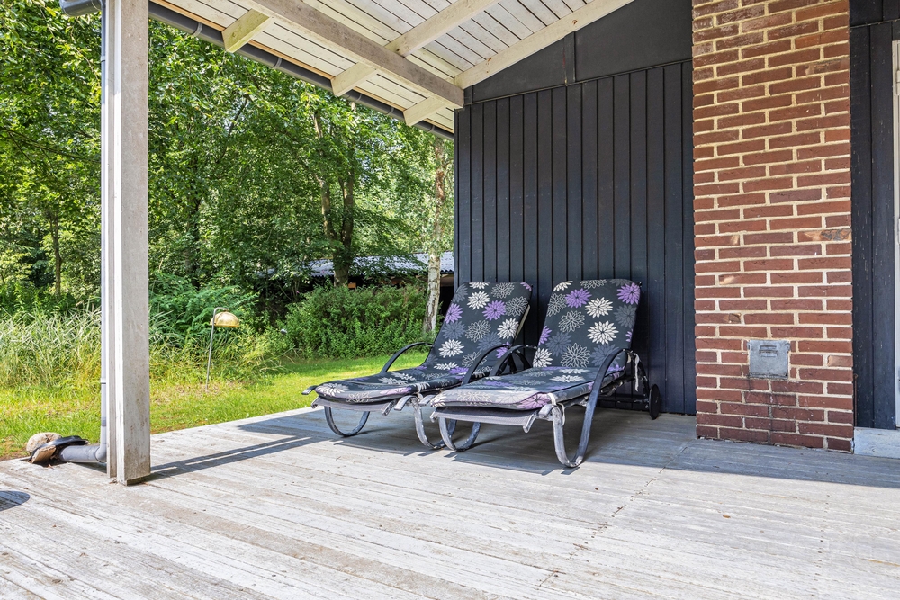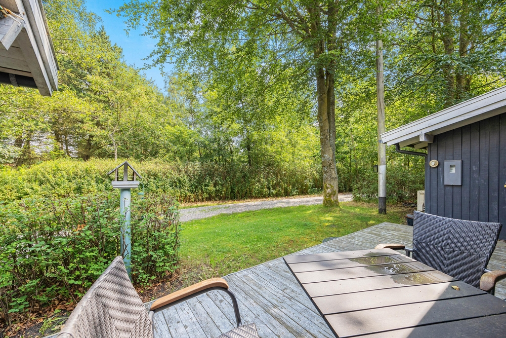 Der er flere gode terrasser, som I kan tilbringe de solrige feriedage på. På terrasserne kan I finde jer godt til rette i de komfortable havemøbler og liggestole på et godt spot i solen, hvor I kan nyde ferien, varmen og udsigten til den smukke natur.
