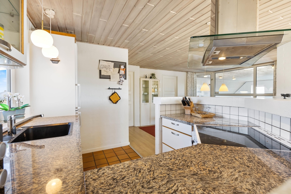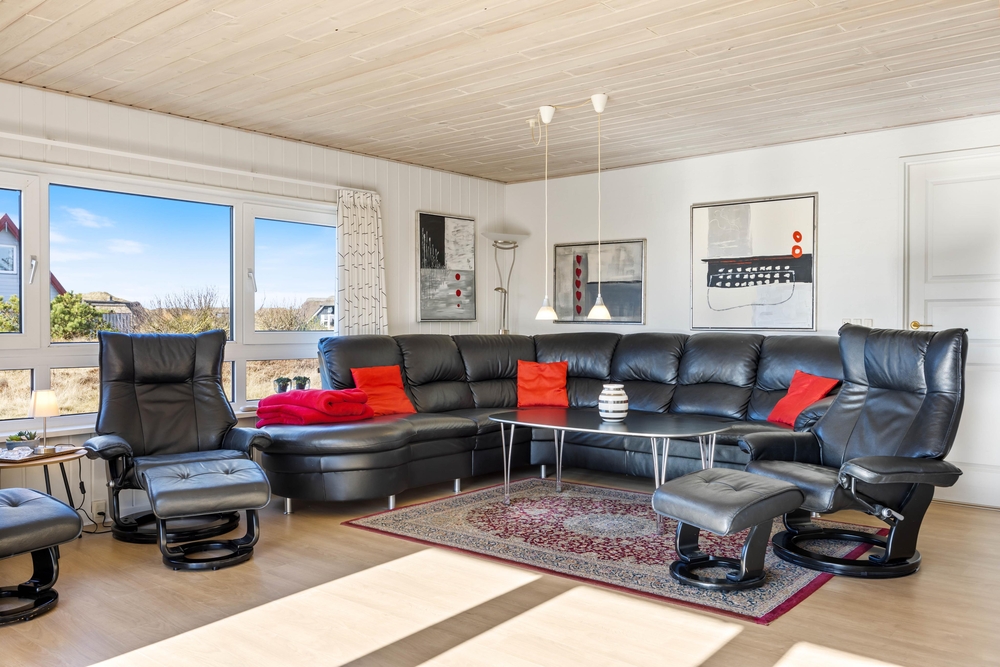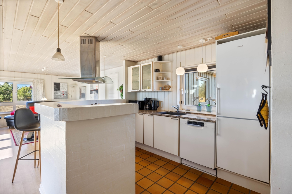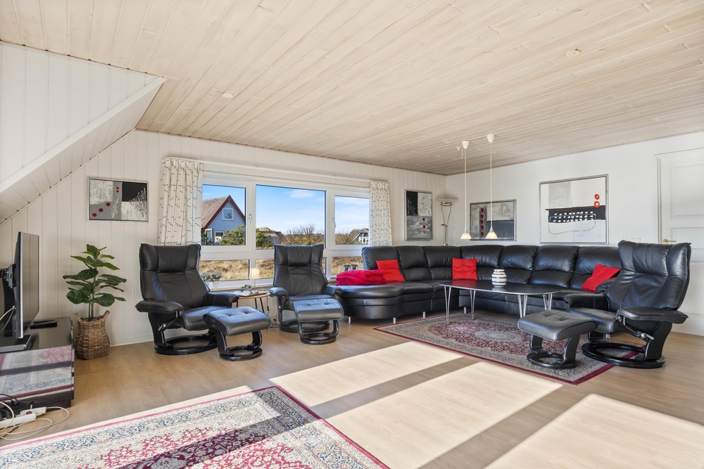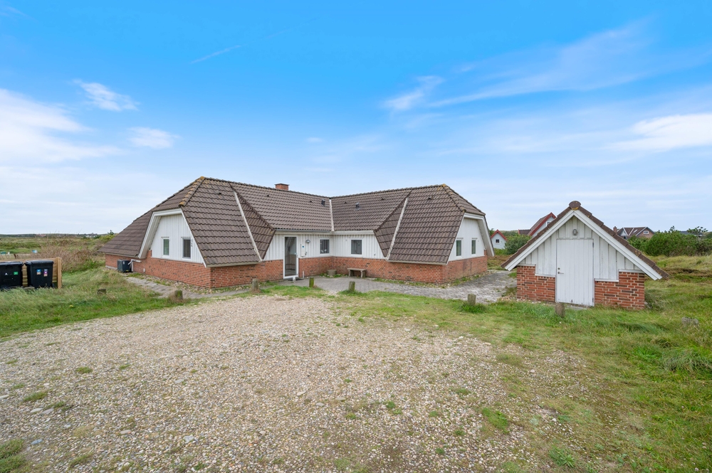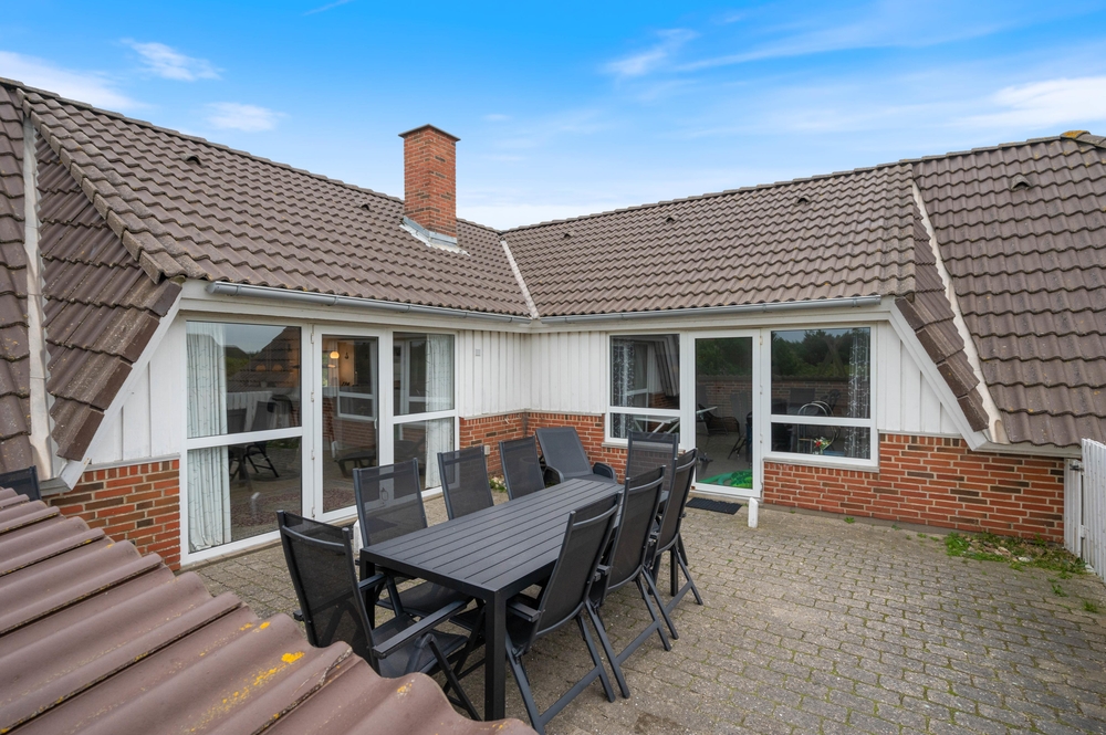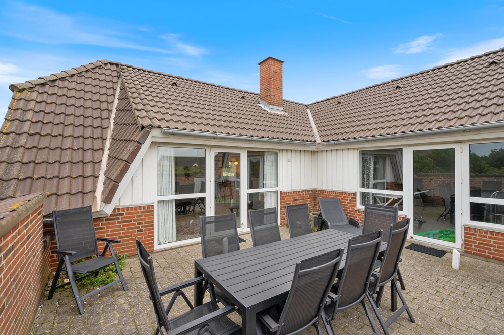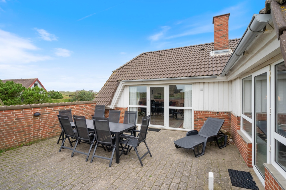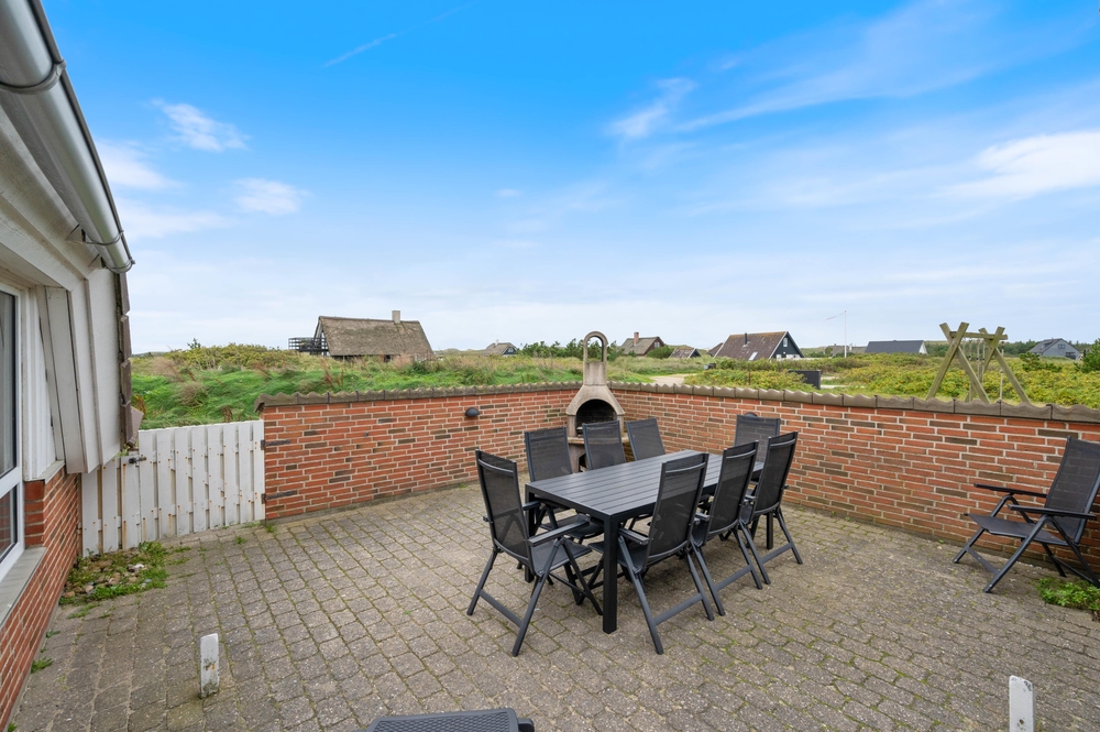 Fra stuen er der udgang til en lukket terrasse, hvor I kan finde læ og nyde udelivet uanset vindretning. Der er god plads til fælles måltider, og grillen står klar, hvis aftensmaden skal tilberedes under åben himmel. Udelivet her i Bjerregård er præget af den friske havluft og lyden af Vesterhavets bølger ? ideelt til en afslappet ferie.