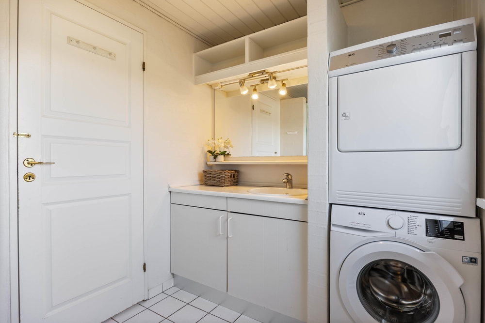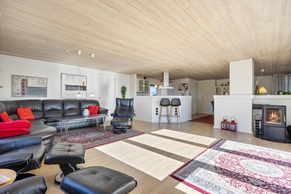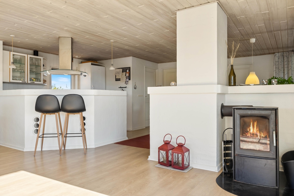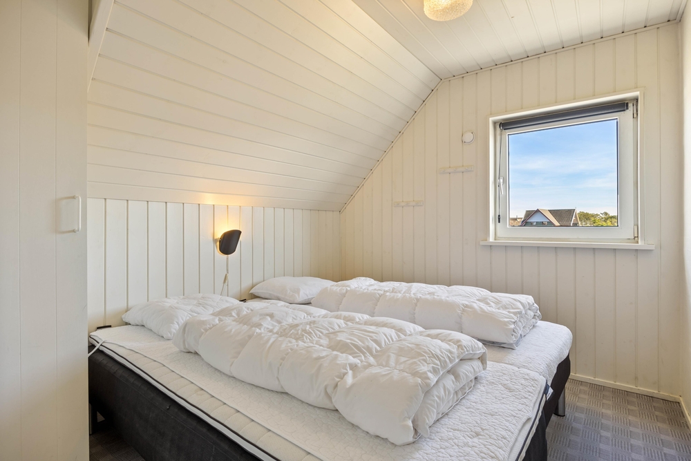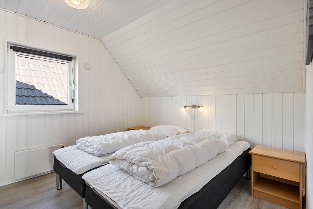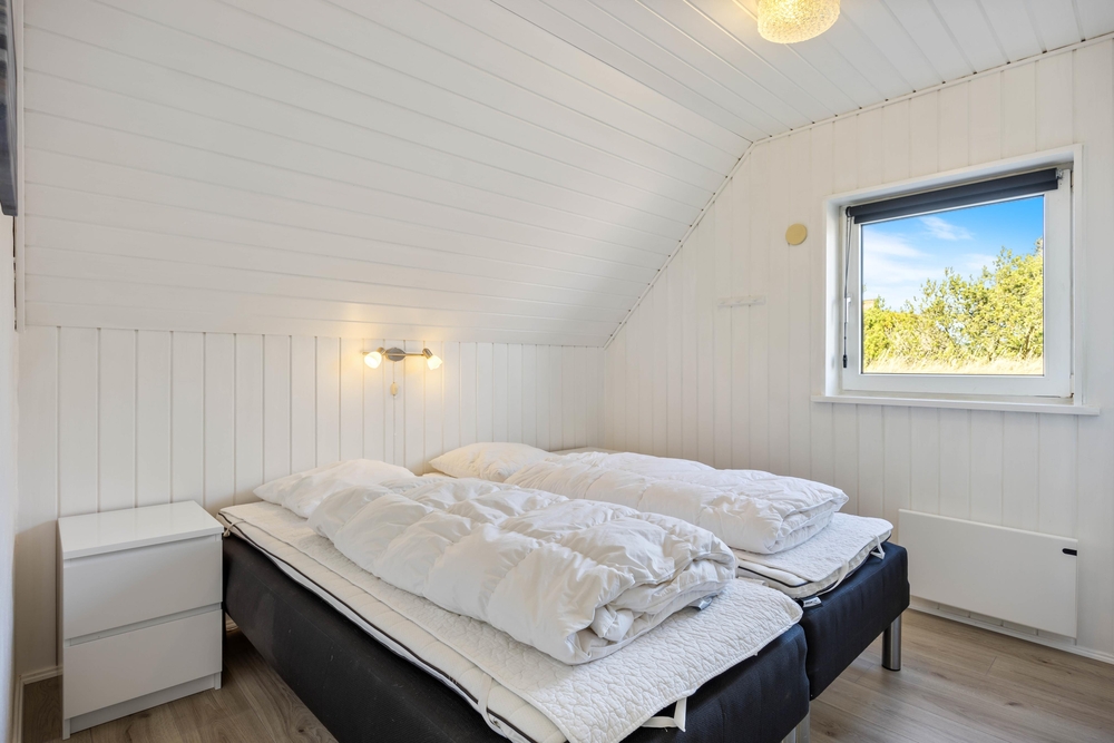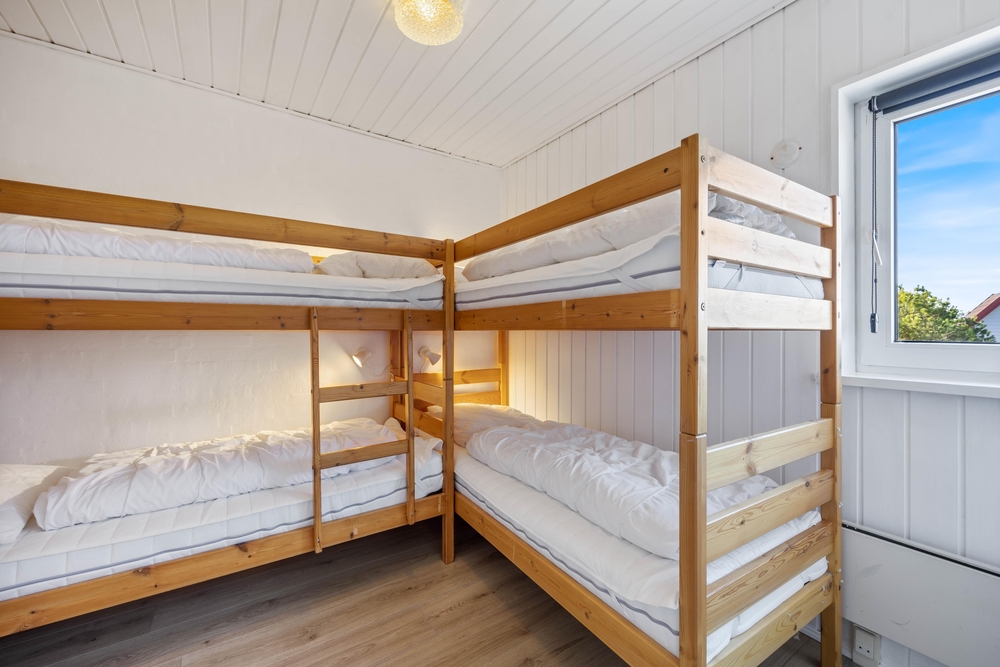 Sommerhuset har 4 soveværelser og 2 badeværelser ? begge med gulvvarme. 3 af værelserne er indrettet med dobbeltsenge, mens det fjerde værelse har 2 køjesenge ? perfekt til børnene, der gerne vil dele værelse. Den funktionelle indretning gør det nemt at være mange samlet under ét tag, uden at pladsen føles trang.