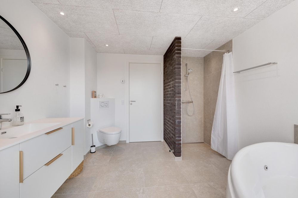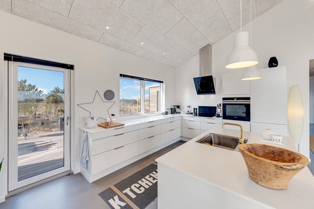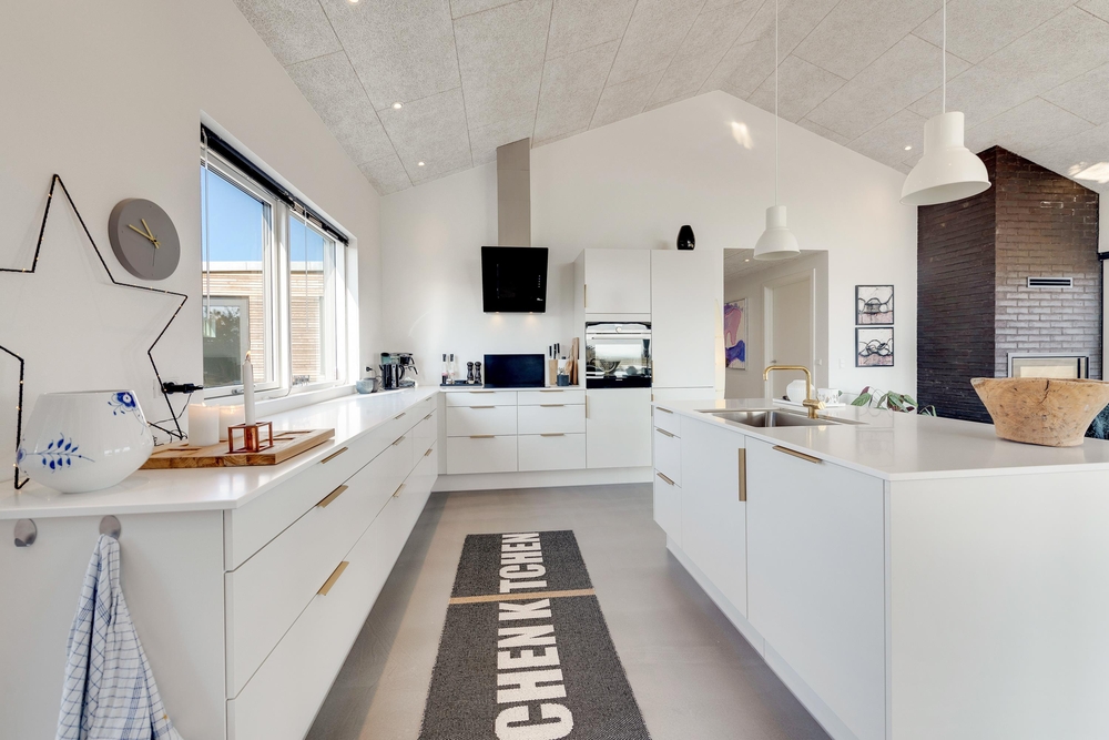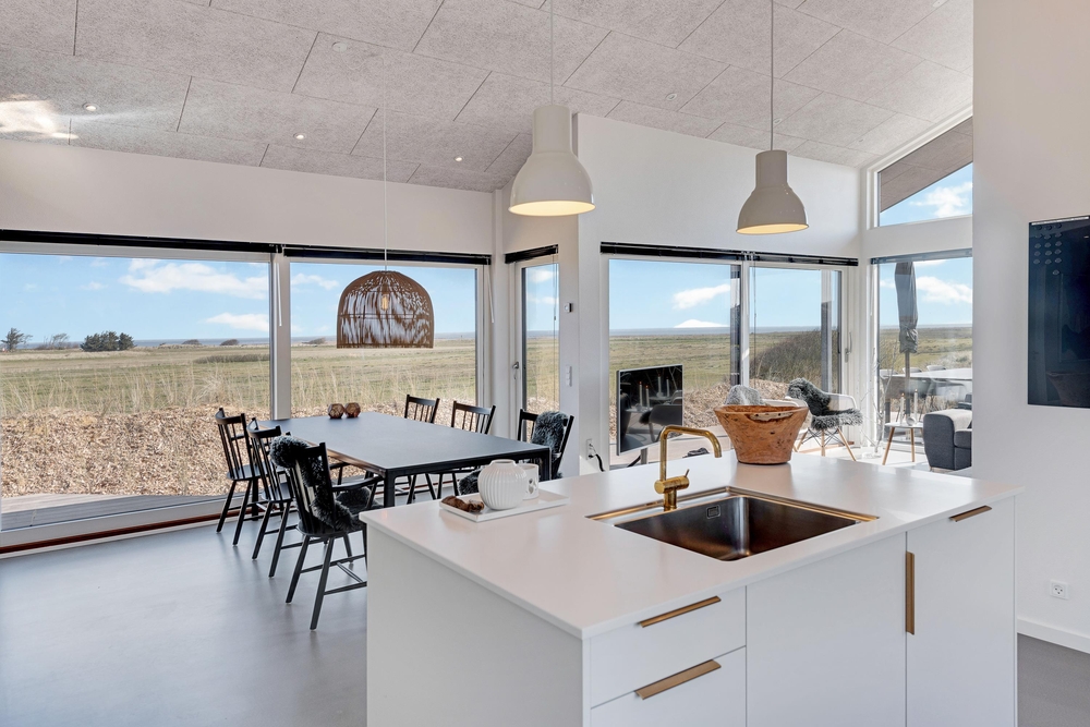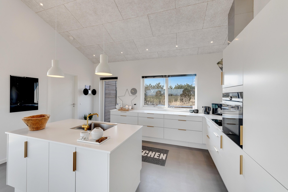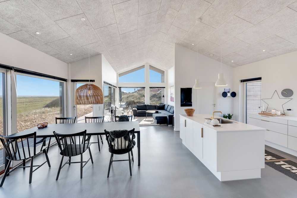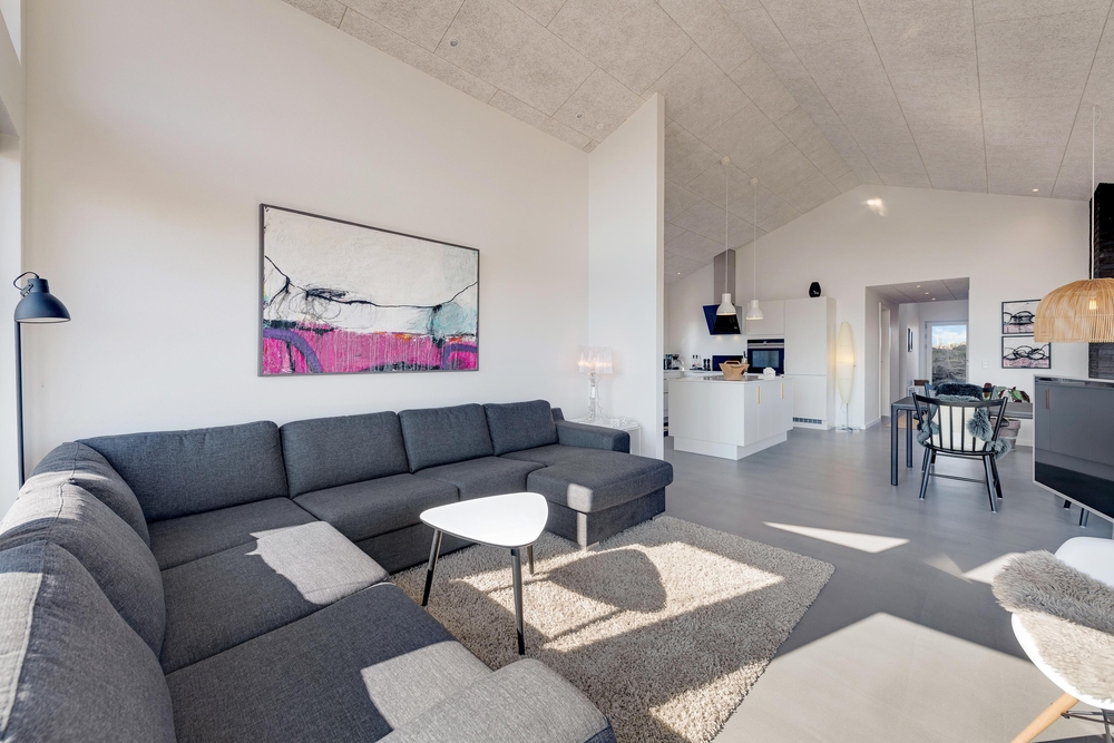Et ophold her er ren forkælelse og velvære udover det sædvanlige. Overalt i huset er der superflotte betongulve ? New Yorker gulve ? med gulvvarme, og hele huset er flot og stilfuldt indrettet. Huset er opført i 2018, og hjertet i huset er det store lyse og gennemgående opholdsrum, som forener køkken, spiseafdeling og stue.