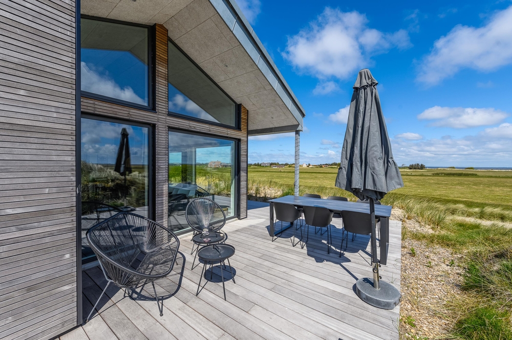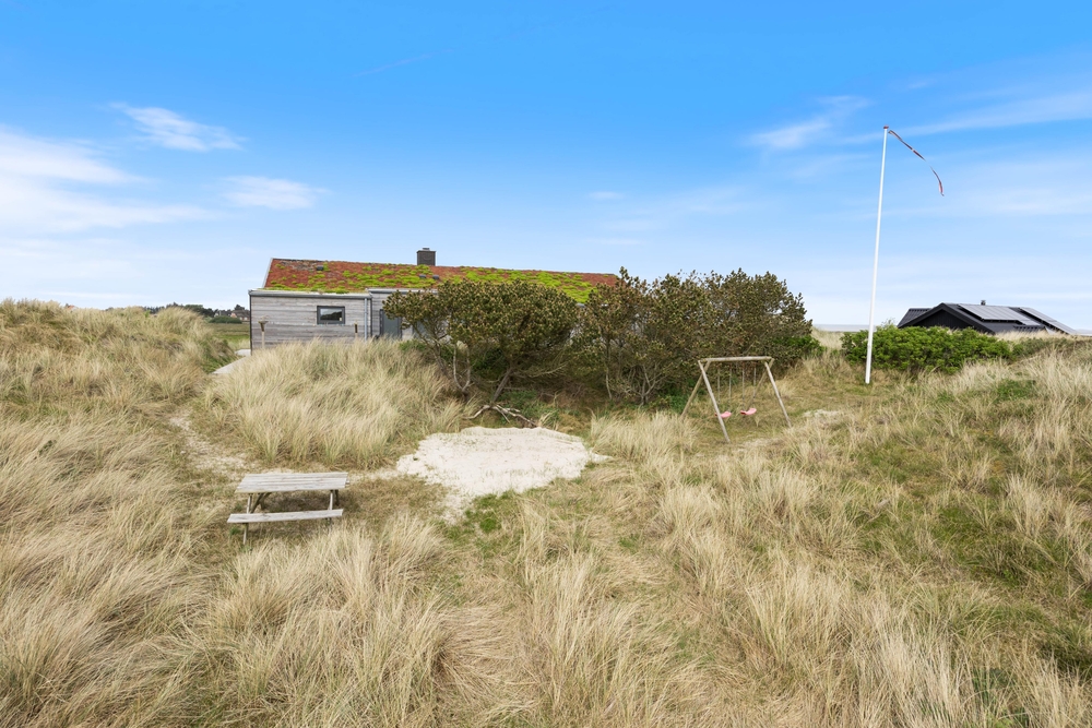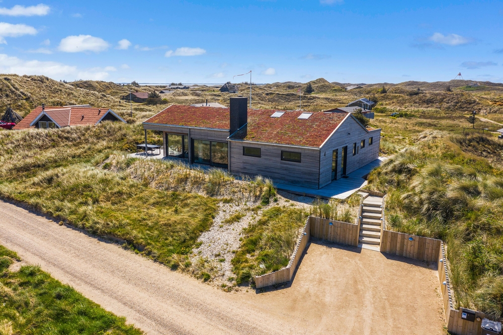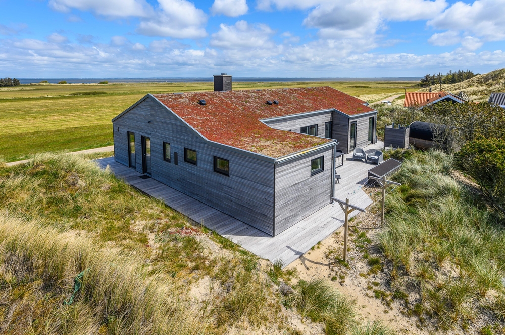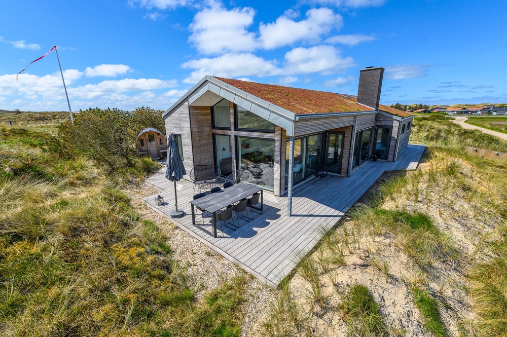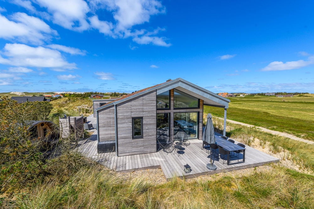 Om aftenen kan man sætte fokus mod sydvest og indtage en hyggelig grillmiddag på husets sydvendte terrasse. ? Her kan man se solnedgangen over klitterne og lytte til Vesterhavets brusen i baggrunden. Det må være den ultimative nydelse og balsam for krop og sjæl, og man kommer garanteret frisk tilbage til hverdagen.