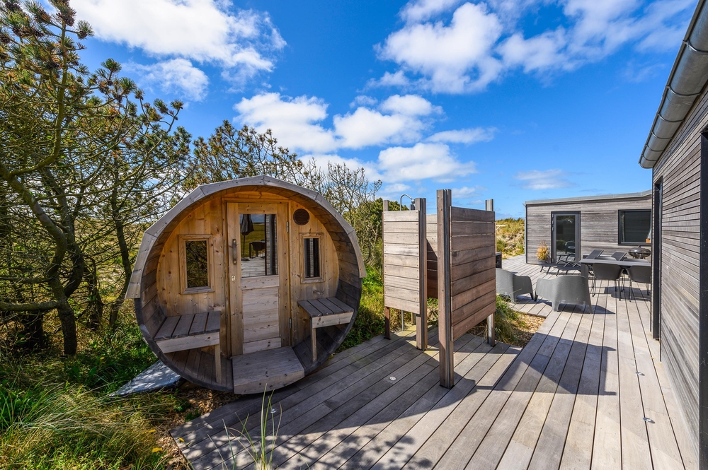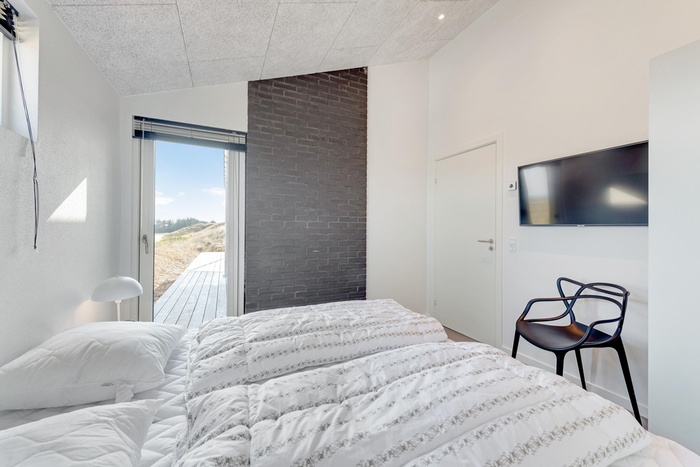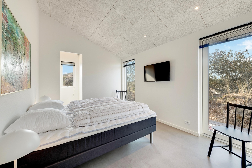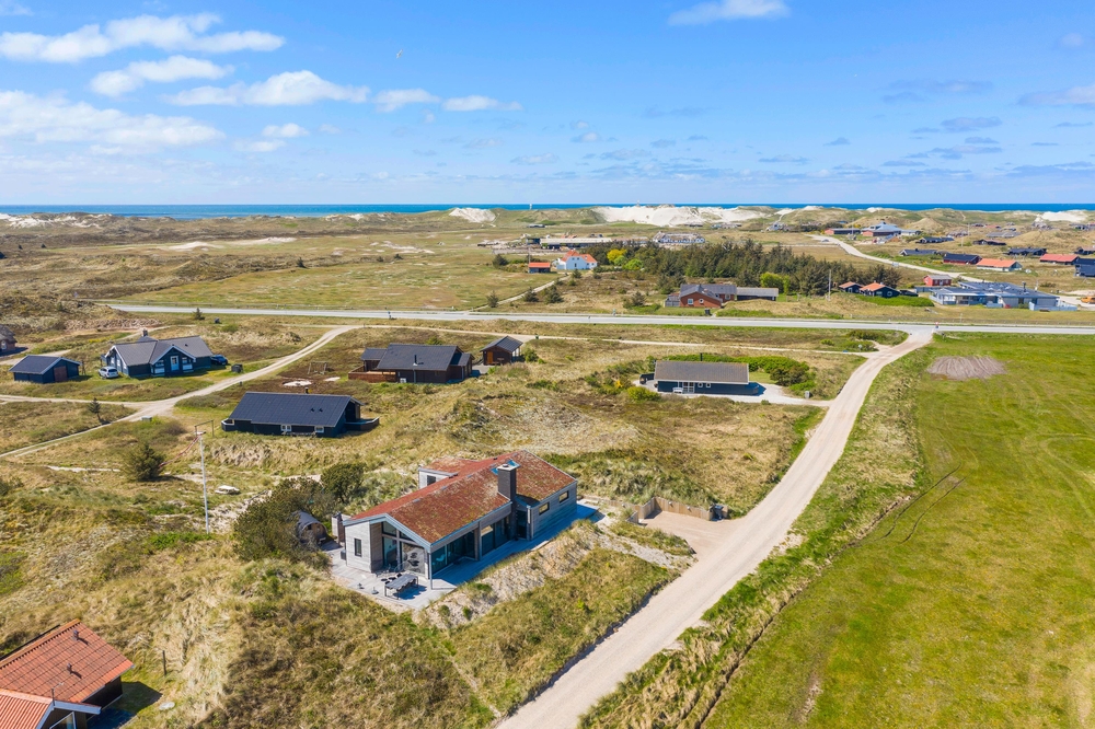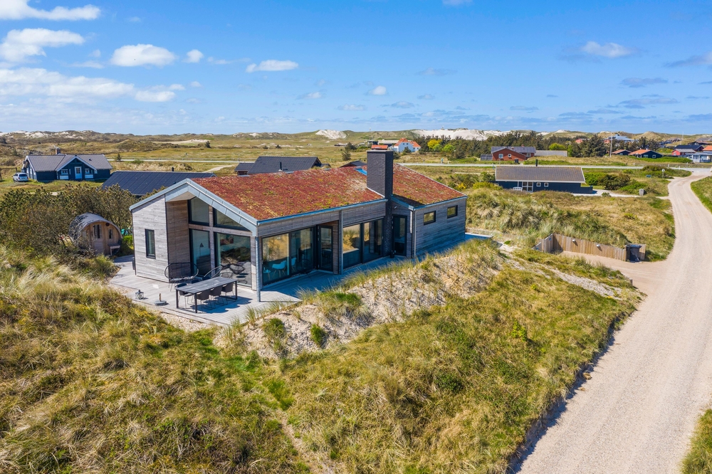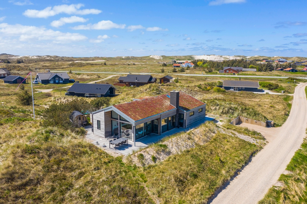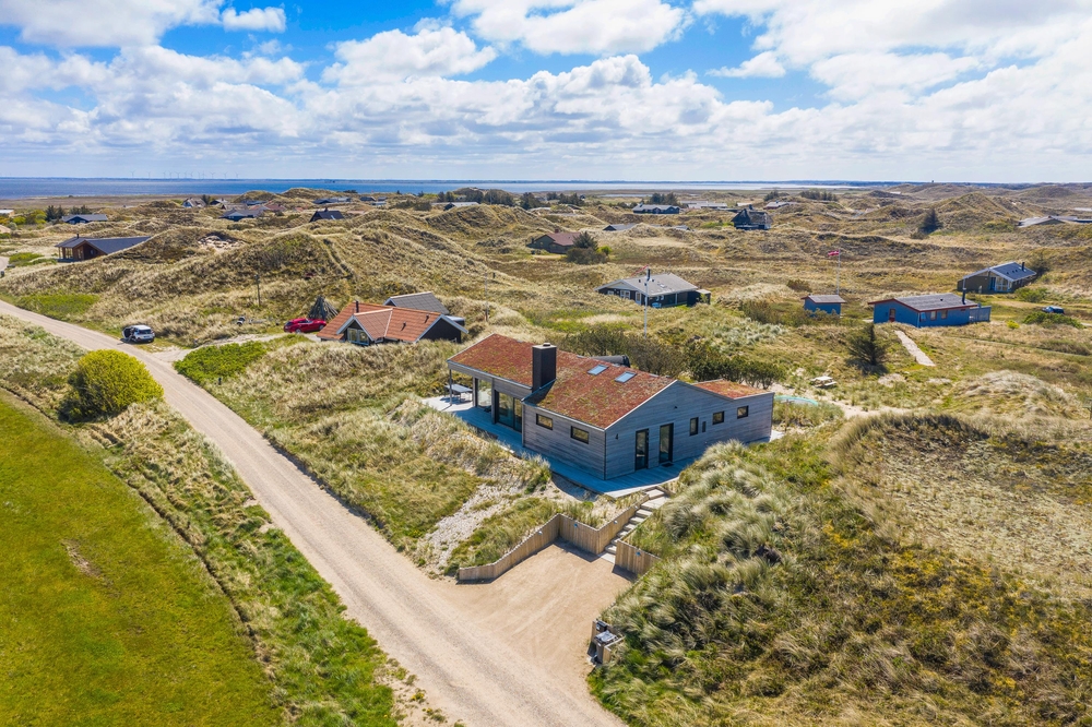 Om aftenen kan man sætte fokus mod sydvest og indtage en hyggelig grillmiddag på husets sydvendte terrasse. ? Her kan man se solnedgangen over klitterne og lytte til Vesterhavets brusen i baggrunden. Det må være den ultimative nydelse og balsam for krop og sjæl, og man kommer garanteret frisk tilbage til hverdagen.