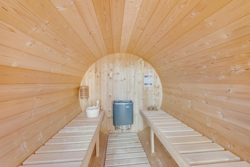 Efter en lang dag ude i naturen, er der her mulighed for at benytte udesaunaen, som ligger separat lidt fra huset. Her kan man rigtig kan lade sig blive gennemvarm ? og måske derefter en tur under husets udebruser (kan benyttes fra april til september) ? og ind i spaen. Rent velvære og afslapning.