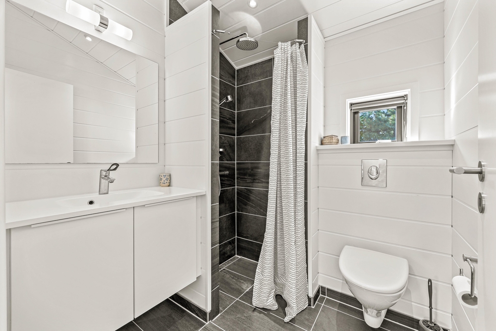 Sommerhusets badeværelse er naturligvis udstyret med gulvvarme, så I slipper for at fryse fødderne om morgenen. Her er 3 behagelige soveværelser, hvor I kan lade batterierne op og blive klar til feriedagenes udflugter og aktiviteter.