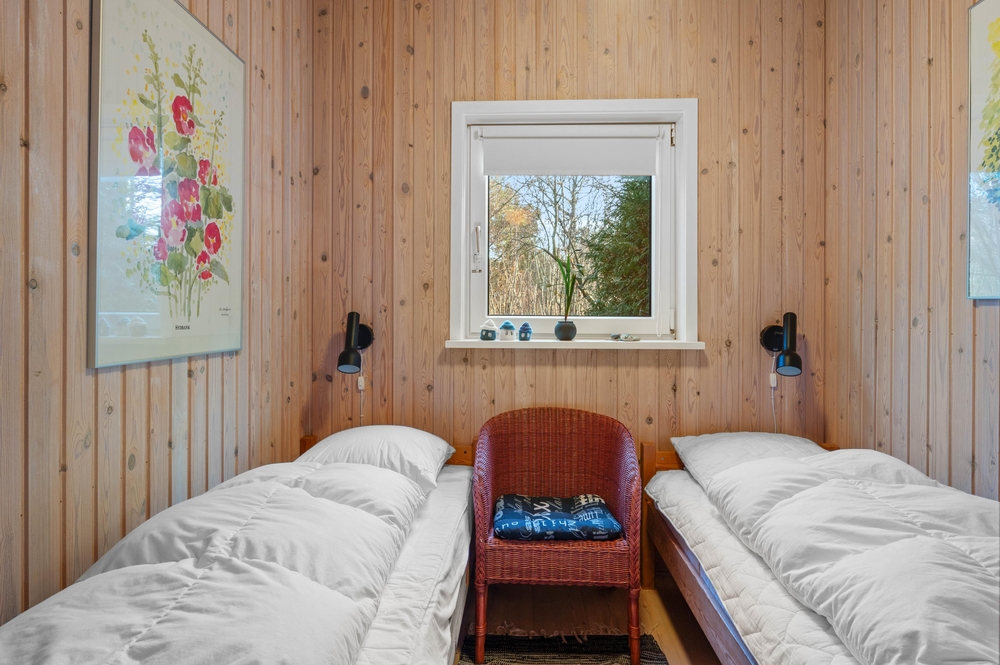 Huset råder over 4 værelser, hvoraf 2 er udstyret med dobbeltsenge, mens 2 er indrettet med enkeltsenge. I har derfor masser af plads at gøre godt med, når sengepladserne skal fordeles. Derudover finder I 1 mindre toilet med tørretumbler og vaskemaskine samt 1 stort badeværelse, hvor der ikke alene er bruseniche og gulvvarme, men også spabad og sauna.