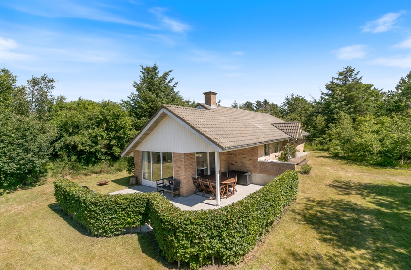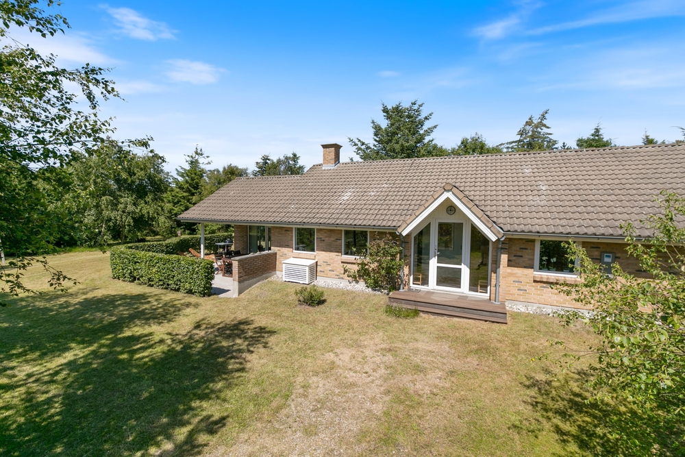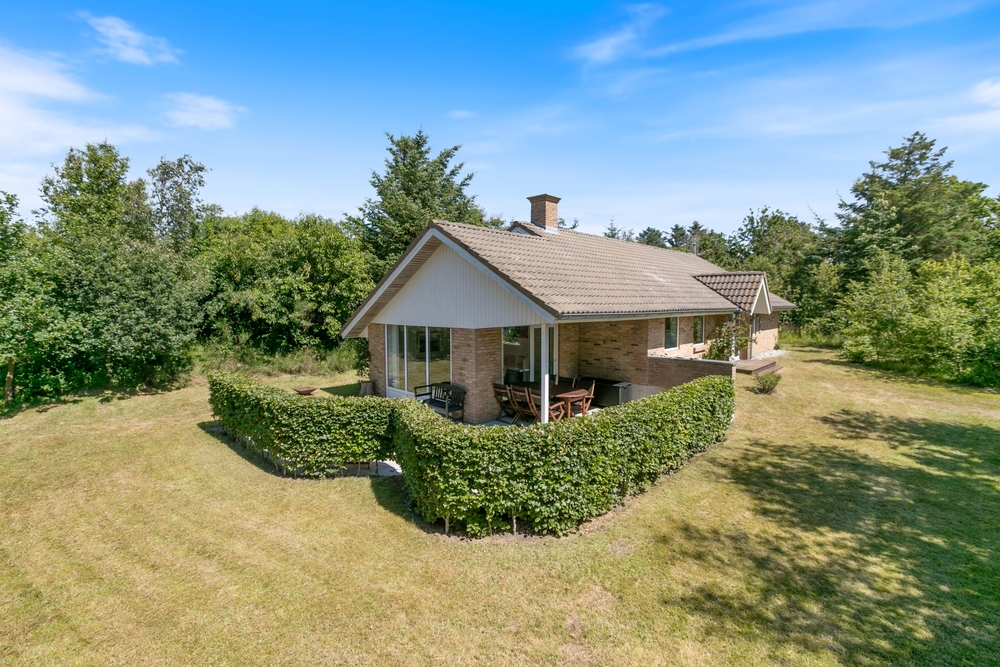 På terrassen kan I smække benene op og iagttage ikke alene legende børn, men også den smukke natur, der hersker på grunden. Hele vejen omkring den store, grønne plæne står træer og buske og danner et naturligt hegn. De skærmer ikke bare for vind og vejr, men giver jer også ekstra privatliv på ferien.
