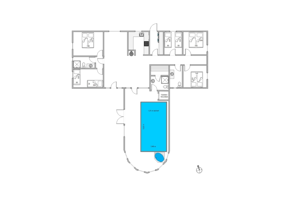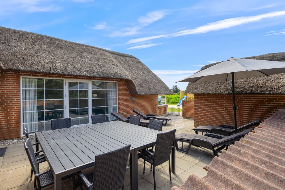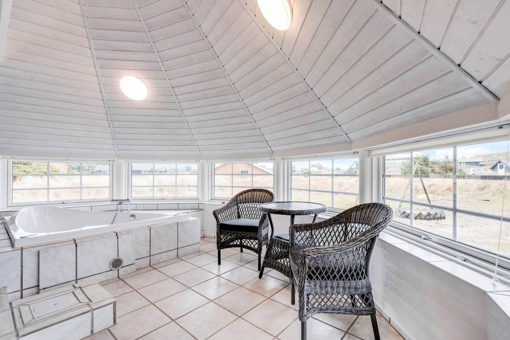 Det store 10-personers sommerhus har en 16m2 stor pool, der sikrer timevis af underholdning. Her er I aldrig afhængige af vejret. Poolen er altid åben og klar til at hoppe i. Der er også plads til, at man kan svømme nogle baner frem og tilbage, inden børnene kaster sig over vandet. Der er samtidig et spabad, hvis I ønsker mere afslapning. Har I brug for at få varmen, så kan I benytte jer af saunaen.