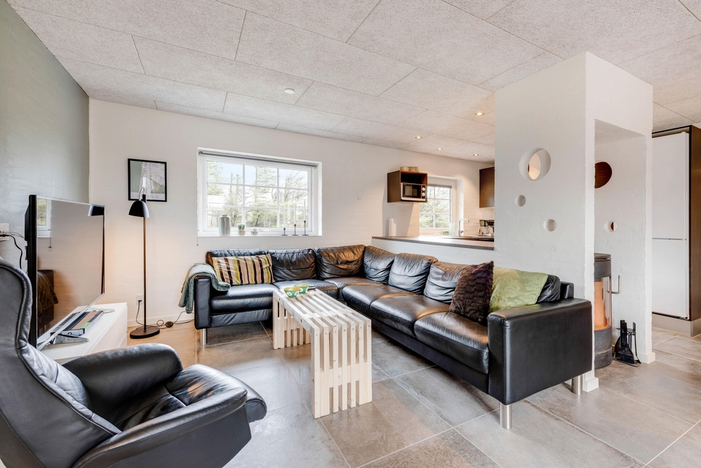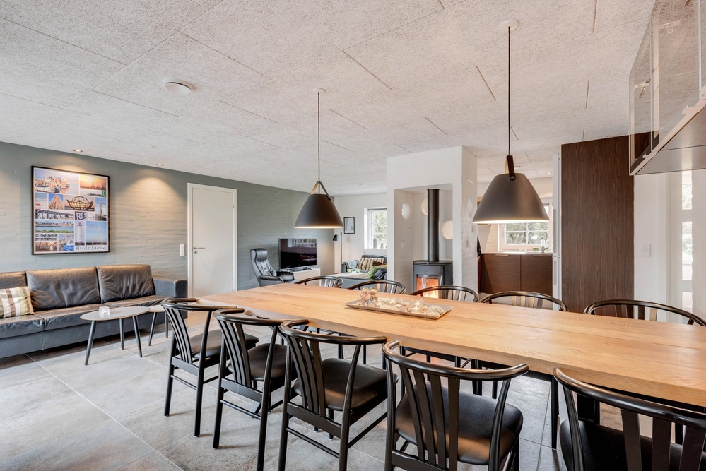 Troldedalen 36 har med sine 185 m2 plads til 10 personer. Feriehuset rummer alt hvad der er brug for, for at I kan holde en dejlig ferie. Sommerhuset har et funktionelt og åbent køkken, som ligger i direkte forbindelse med husets stue. Her er der plads til, at I alle kan samles om en god film på fladskærms-tv?et eller et brætspil. Samtidig kan I med fordel tænde op i brændeovnen og nyde varmen og den knitrende lyd fra ilden. Feriehuset er indrettet med gode soverum med både dobbeltsenge og enkelmadssenge.