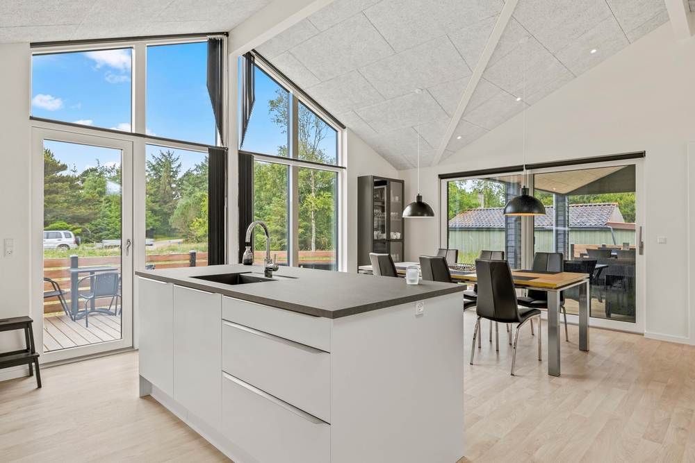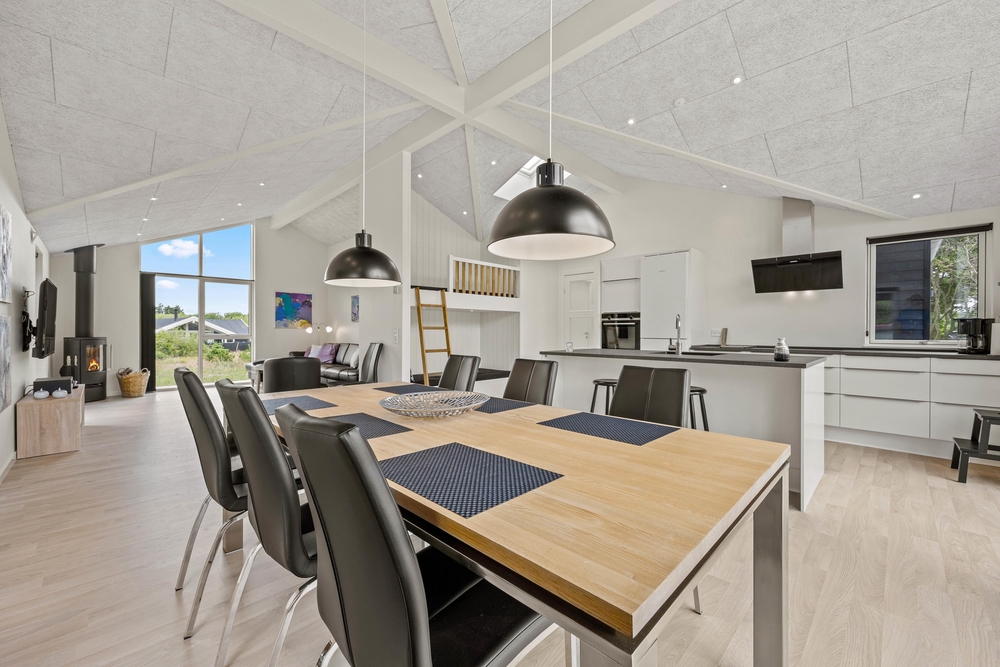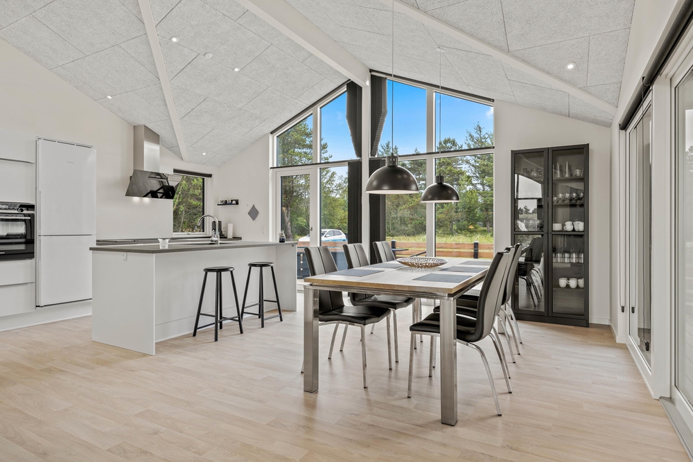 Sommerhusets på 130 m2 byder på råhygge for op til 6 gæster, som uden tvivl hurtigt vil kunne føle sig hjemme her. I sommerhuset er der kræset for detaljerne både hvad angår funktionalitet, afslapning og socialt samvær. Over det hele er der loft til kip og de store vinduespartier, som får rummene til at virke større, lyse og trækker naturen med helt ind i stuen.