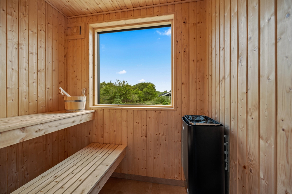Efter en lang gåtur på stranden eller oplevelsesrig dag med fart over feltet, er der wellness og afslapning på programmet. På det ene af sommerhusets to badeværelser, skal I blot tænde for saunaen og boblerne i spaen ? den perfekte måde, hvor man for alvor kan blive varmet igennem og slappet af, mens I kan kigge udover det skønne område fra saunaen.