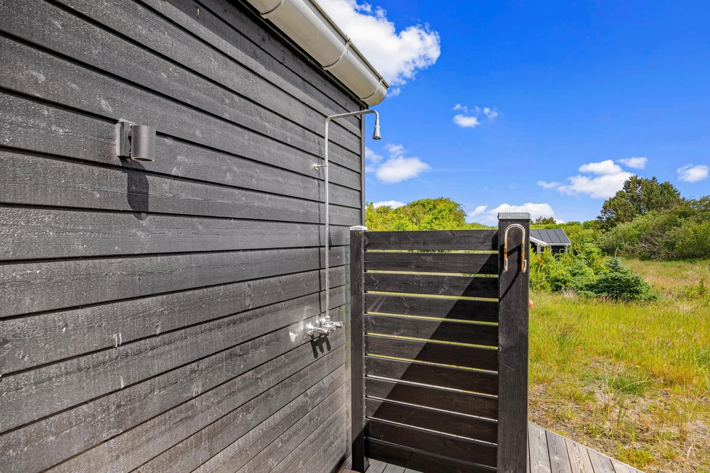 På en varm sommerdag er der mulighed for at blive kølet helt af under udebruseren. Også meget praktisk til at få sandfødderne rene igen efter en tur på stranden.