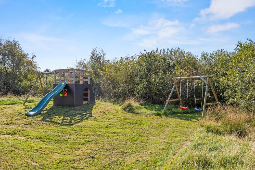 Den store plænegrund tilbyder masser af plads til udendørs spil og sjov, herunder en trampolin, hvor børnene kan hoppe og lege. På den flade græsplæne er der god plads til alt fra fodbold til kongespil, mens der kan slappes af i havemøblerne på terrassen ? her finder I naturligvis også liggestole!
