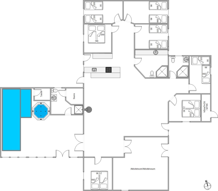 Træd indenfor i dette børnevenlige sommerhus, der byder på aktiviteter for store og små. Sommerhuset er lyst, rummeligt og indretningen holdt i rolige farver. Med 3 fine badeværelser, 7 gode soveværelser samt en stor hems kan alle finde en rolig krog. På hemsen er der ekstra sovepladser til 2 voksne eller 4 børn. Aktivitetsrummet, poolrummet og det skønne alrum indbyder derimod til timevis af sjov og gode stunder med fællesskab.