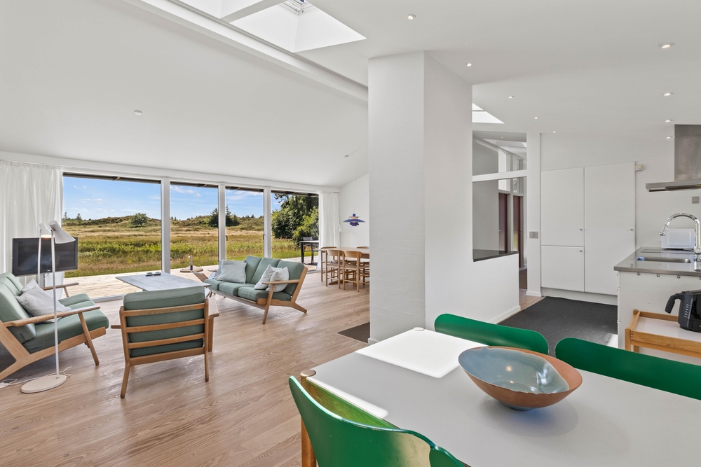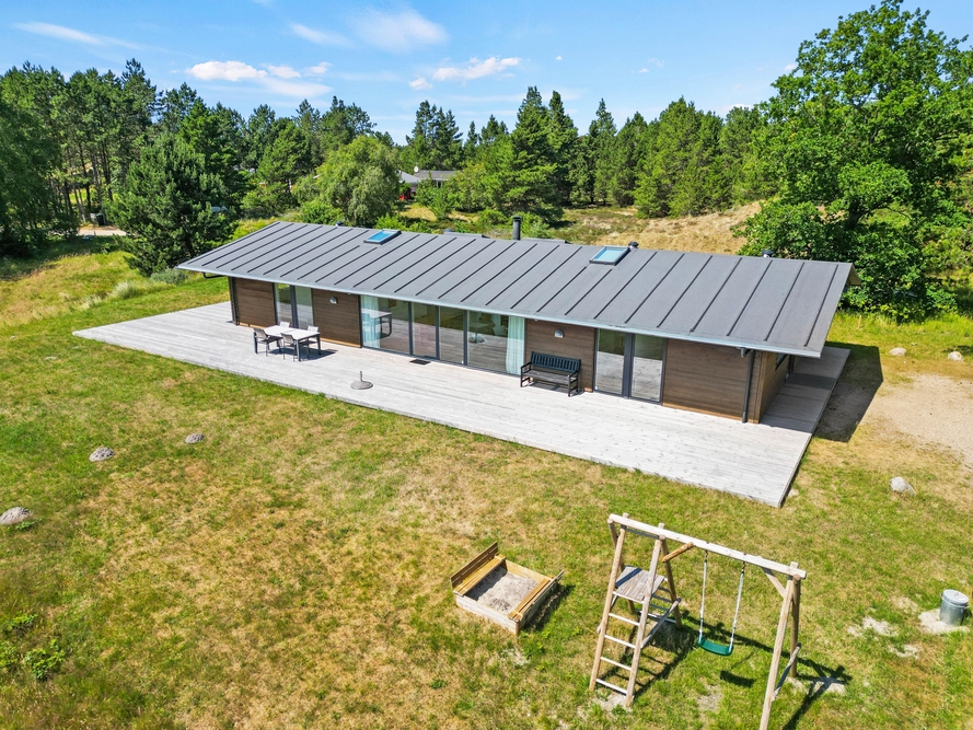 Vestergårdsvej 7 er beliggende på en natursmuk grund, kun 1500 meter fra havet, hvor der er plads til afslapning og fordybelse. I stuen kan du komme helt ned i gear og nyde varmen fra brændeovnen, imens børnene kan lege ude i sandkassen og på gyngen. Efter en lang dag kan du sætte dig til rette i spaen eller saunaen og slappe af.