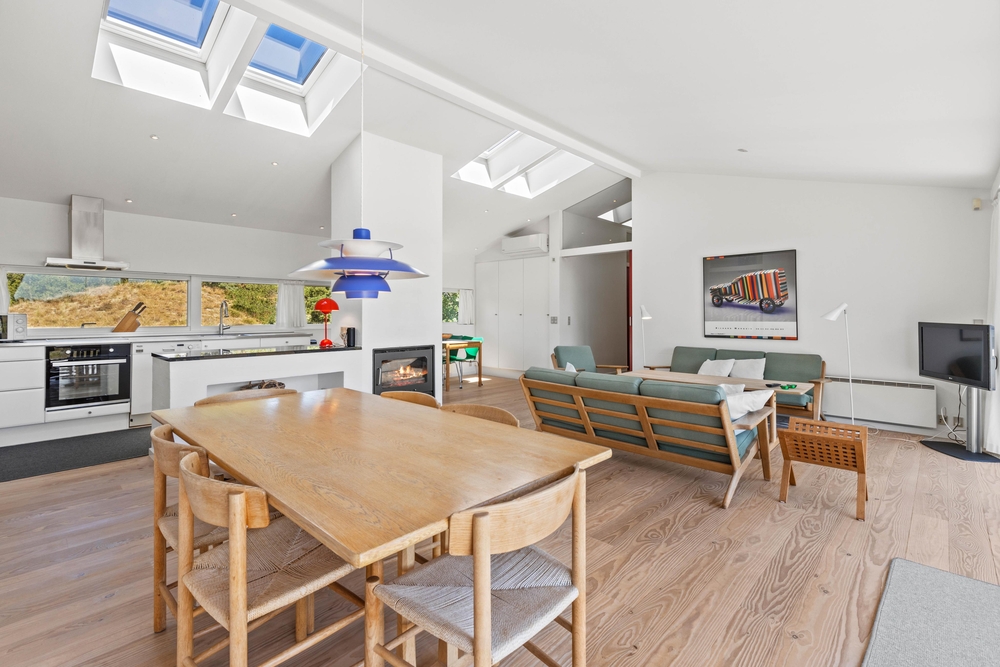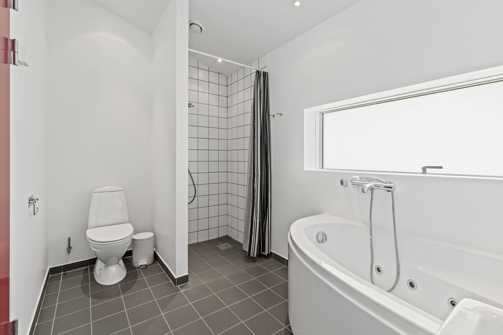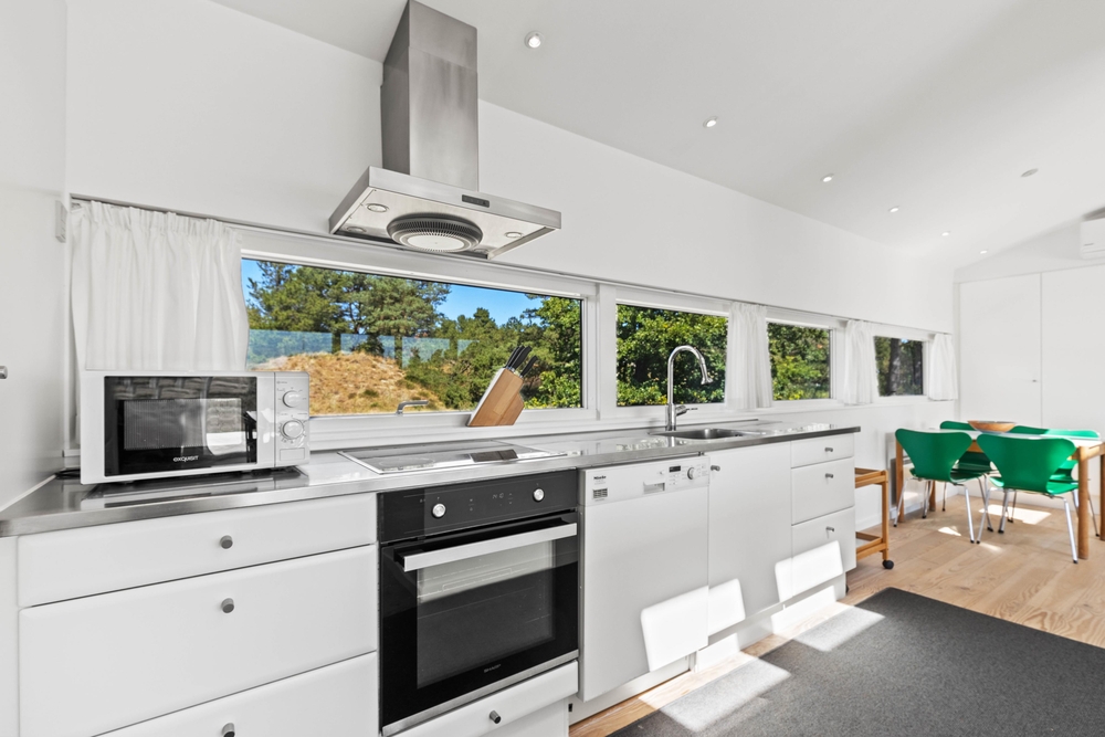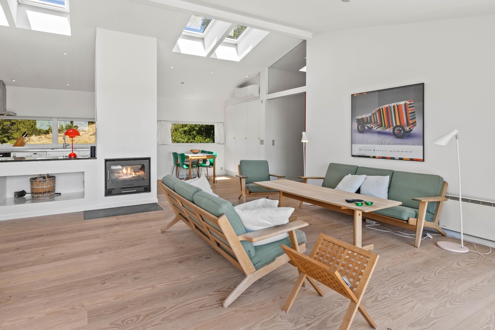 Sommerhuset er også udstyret med en varmepumpe, opvaskemaskine, vaskemaskine og tørretumbler, så de praktiske gøremål nemt og hurtig kan ordnes, så I kan nyde ferien.