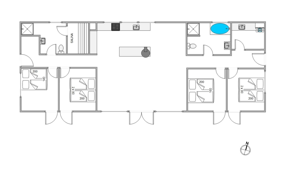 Dette charmende sommerhus er bygget i 2003 og er på 142 m2. På sommerhusets 142 m2 er der plads til 8 personer. De 8 sovepladser er fordelt på 4 soverum med 2 dobbelt- og 4 enkelsenge. Derudover er der 2 store badeværelser med gulvvarme. På det ene badeværelse finder du et spabad, hvor du kan slappe af og nyde ferien. Der er også mulighed for at nyde varmen i saunaen, som du finder på det andet badeværelse.