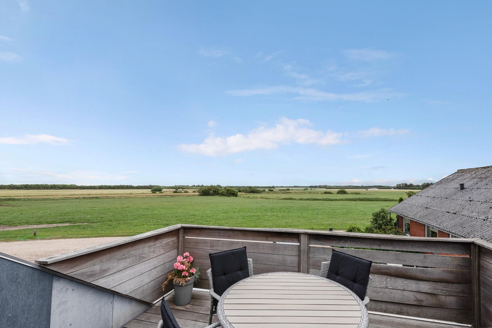 Rigtigt dejligt er det, at I har adgang til 2 store balkoner. Perfekt til at hygge med et glas vin og nyde solnedgangen og den dejlige udsigt over mark og enge. Samtidigt må I bruge gårdhaven. Her kan børnene hygge sig og lege i sandkassen, imens I slapper af og drikker en kop kaffe i solen eller måske tænder op i grillen.