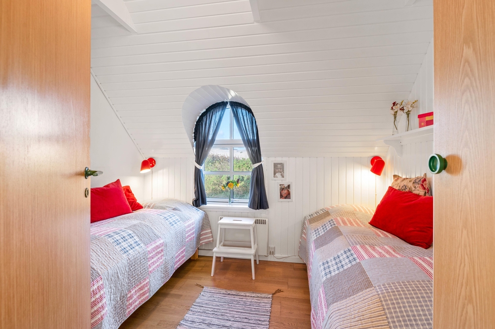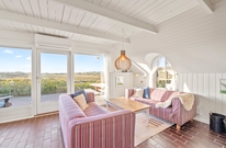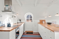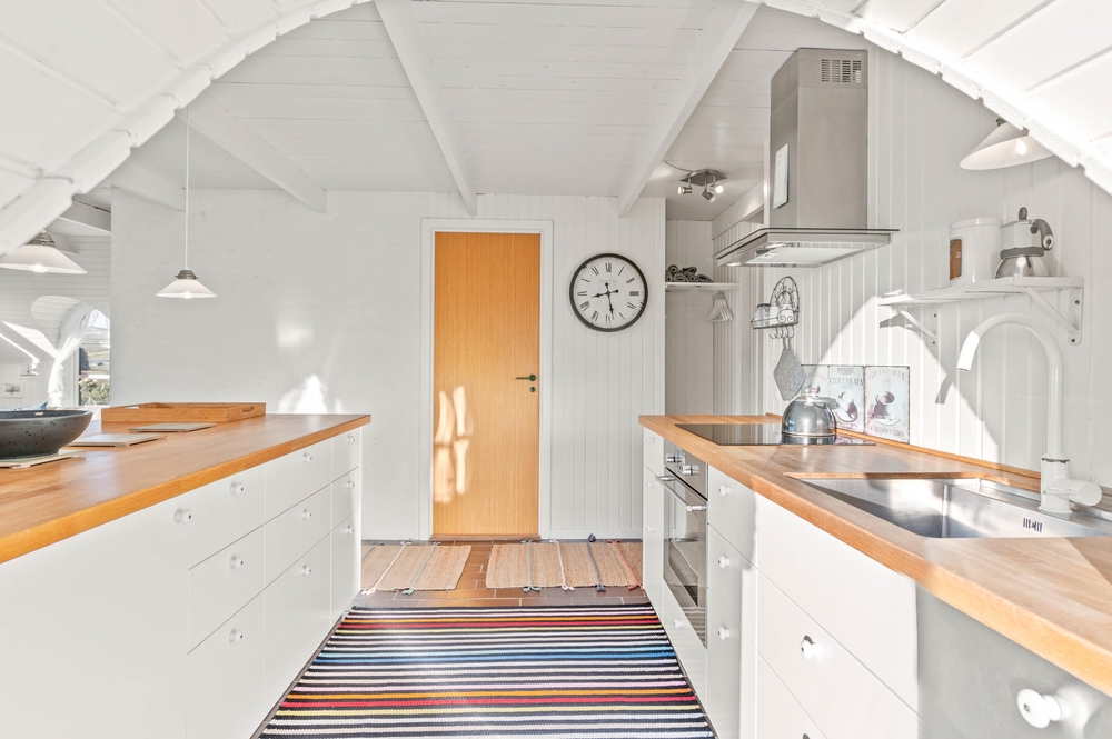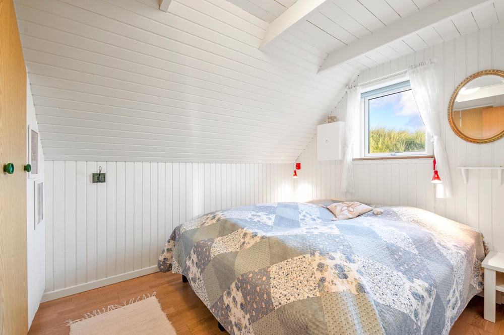 Sommerhuset er indrettet med en utrolig hyggelig stil, som har bevaret sommerhusets sjæl og charme. Her kan du lade batterierne op, nyde roen og den smukke udsigt over området og til klitterne. Lav en skøn middag i det flotte køkken eller slap af i den hyggelige stue, ? læs en bog i krogen i den magelige lænestol, mens ilden knitrer i brændeovnen. De hvide skråvægge og de hyggelige buede vinduer er med til at give sommerhuset den helt rigtige sommerhushygge.