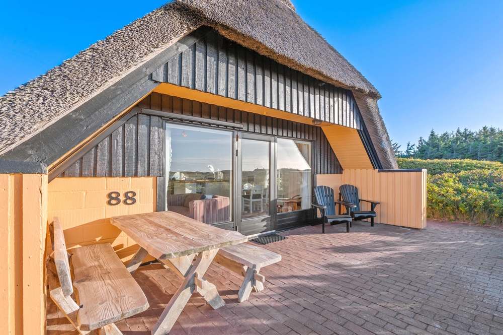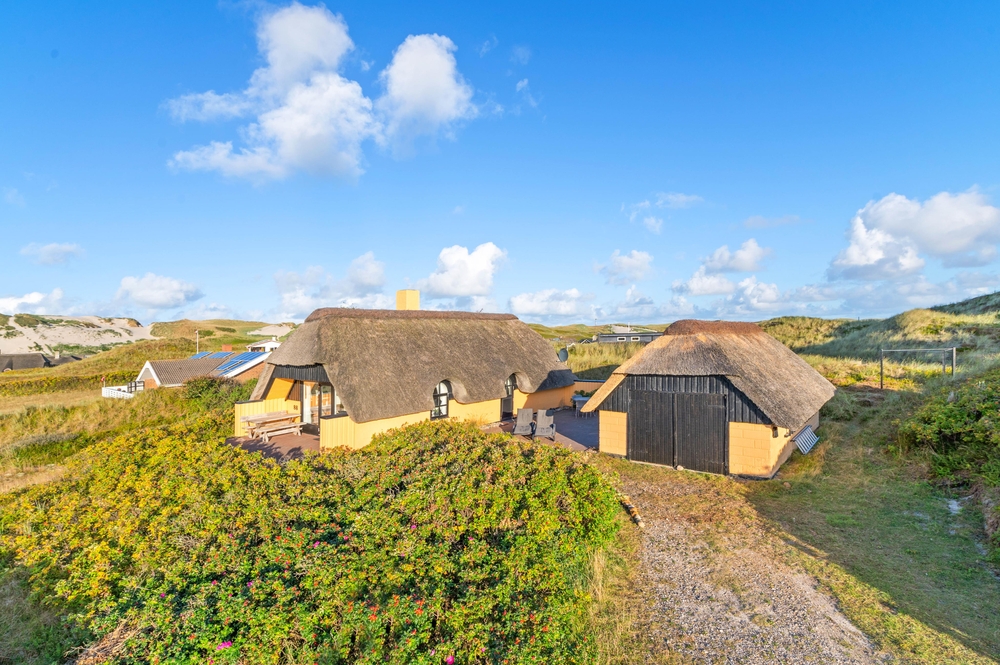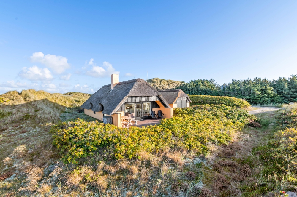 Med den flotteste udsigt og skønneste beliggenhed, tæt på stranden og Vesterhavet ligger dette hyggelige sommerhus. Lige uden for dit vindue har du heden og klitterne, og i stuen og på den afskærmede terrasse er udsigten fantastisk.