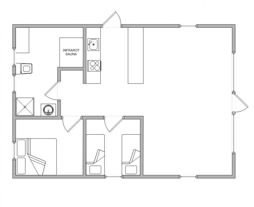 Efter en lang gåtur ved stranden, kan du slappe af i den infrarøde sauna, som har god plads til 2 personer. I soveværelset, som er indrettet med trægulve og dobbeltseng, kan du lade batterierne op igen til næste dags aktiviteter.