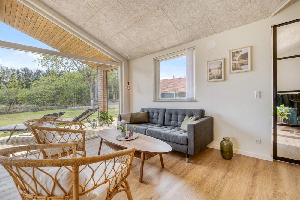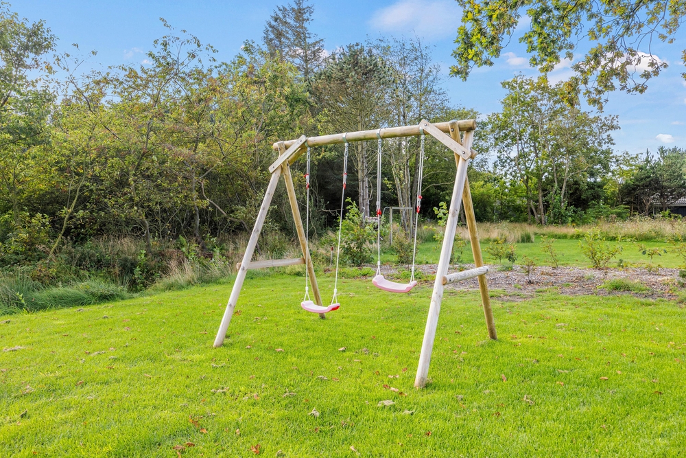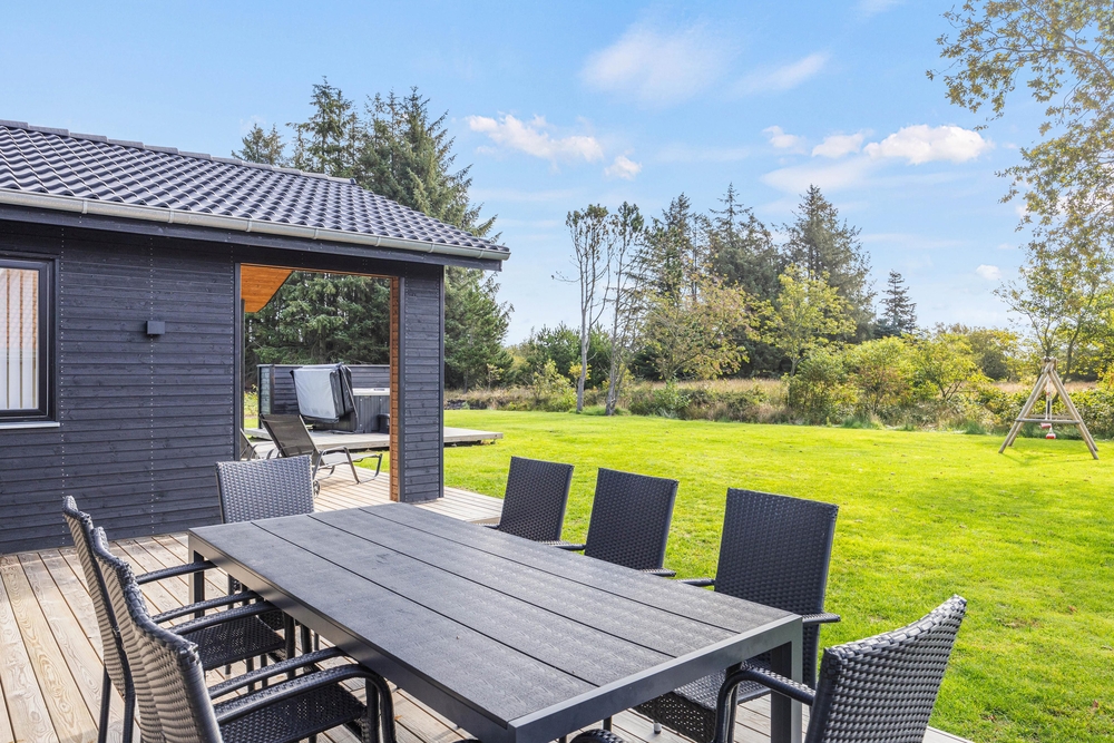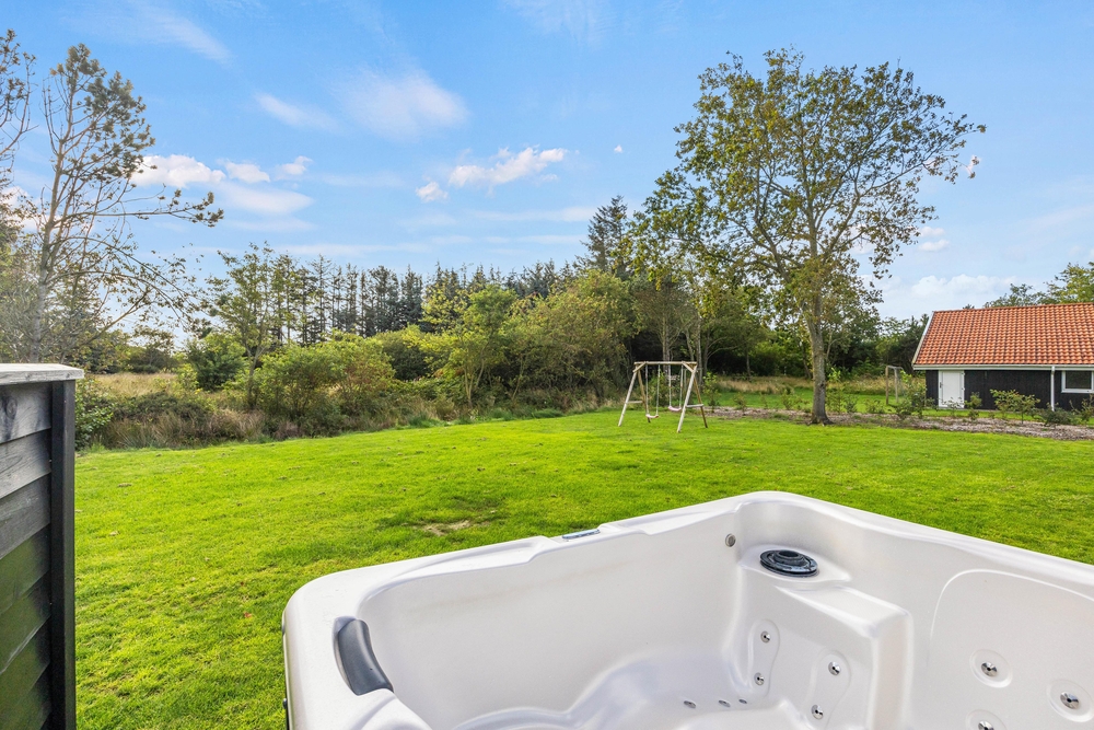 Ud over wellnessområdet har dette sommerhus også andre gode muligheder. Eksempelvis den delvist overdækkede terrasse, som er udstyret med havemøbler, liggestole og grill. Den 1280 m² store naturgrund har masser af plads til, at børnene og hunden kan løbe og lege, og grundens gynge er helt sikkert et hit blandt feriens mindste deltagere.