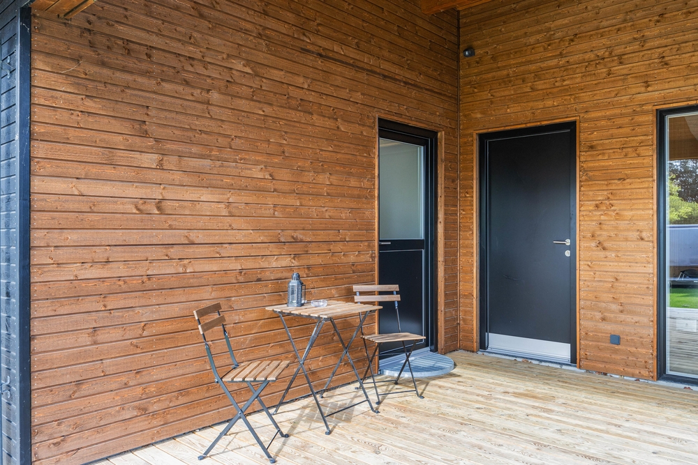 Mens børnene tumler rundt, kan I slappe af på sommerhusets terrasse, som er delvist overdækket. Forbered et lækkert måltid på grillen, eller læn jer tilbage og slap af på ??liggestolene, lyt til fuglene kvidre eller bare se skyerne, der glider forbi på den blå himmel. Lad dine tanker løbe frit og nyd ferien fuldt ud.