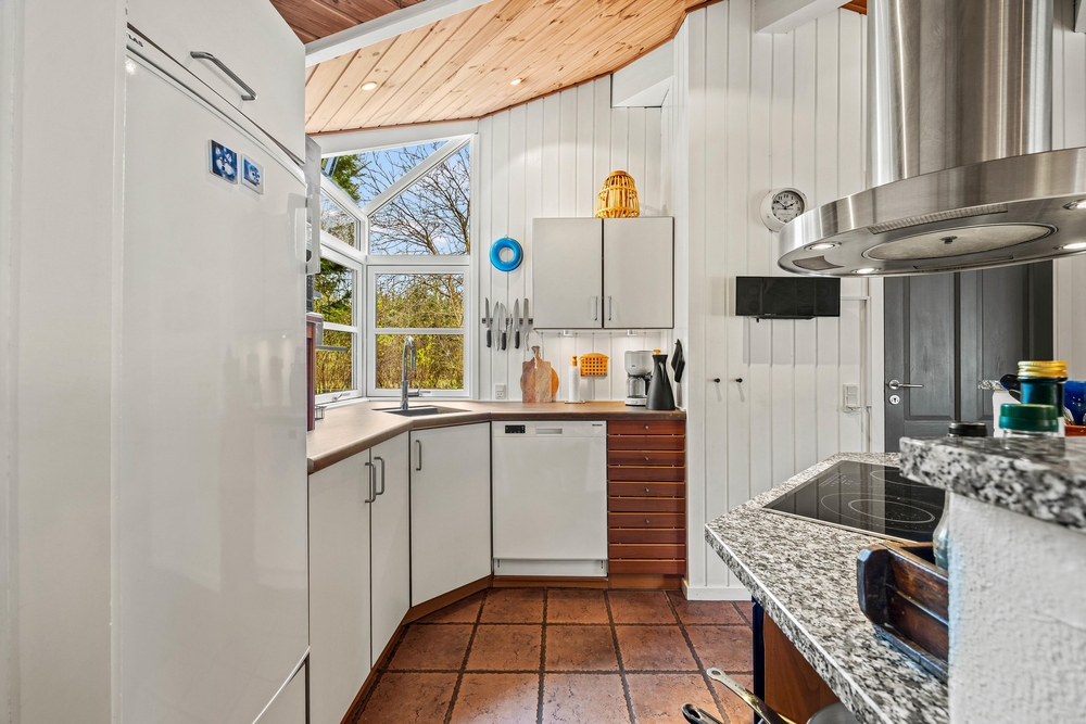 Sommerhusets indretning sikrer et behageligt ophold for jer. Med både en vaskemaskine, tørretumbler og opvaskemaskine til din rådighed, behøver du ikke bekymre dig om praktiske gøremål i din ferie.
