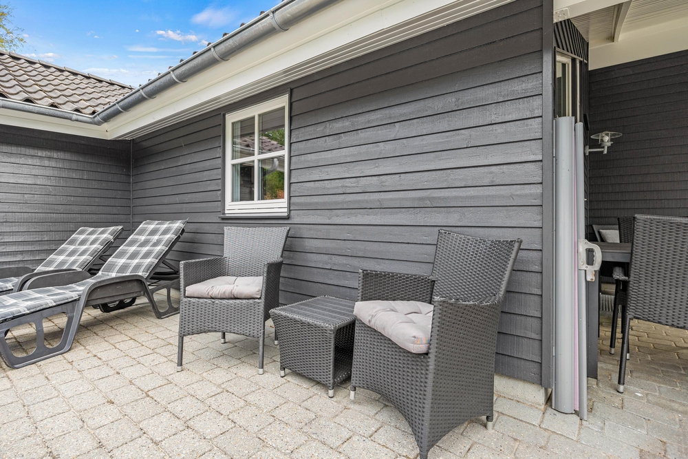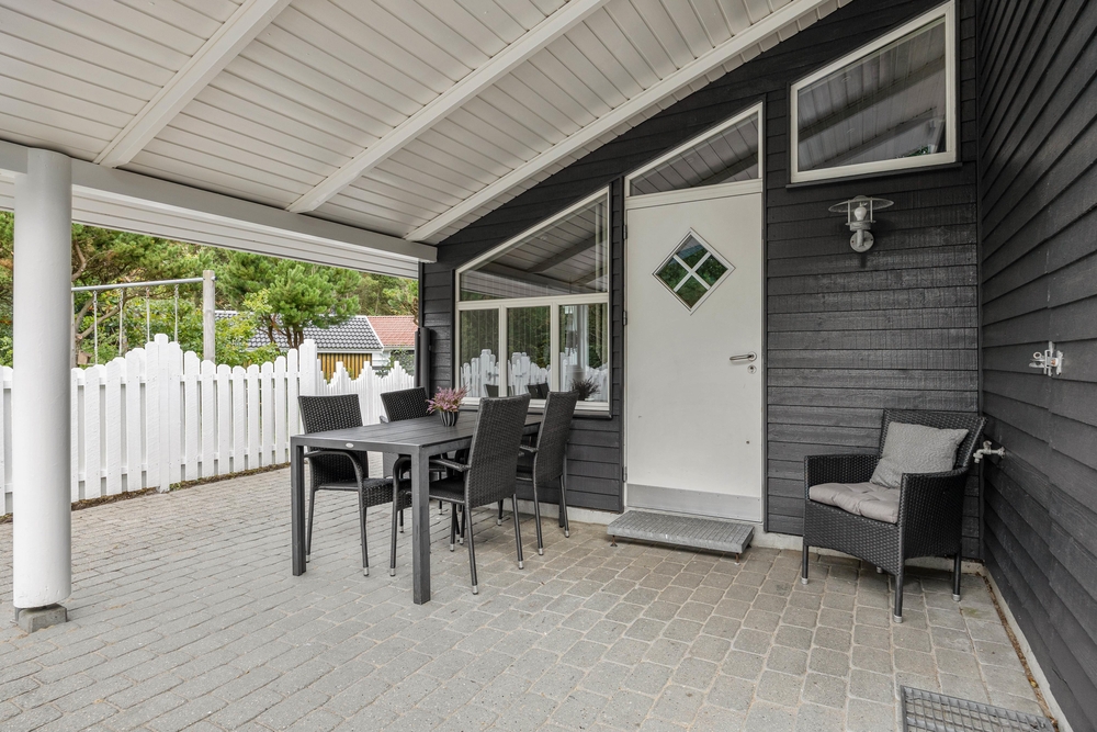 Ferieboligen er beliggende på en 1186 kvadratmeter skøn naturgrund, der er omgivet af træer og buske, hvilket indbyder til udendørs hygge og samvær. I direkte forbindelse med stuen kan I træde ud på sommerhusets lukkede terrasse, som er delvist overdækket. Her kan I lade jeres yngre børn og hunden boltre sig og lege i sikre omgivelser. Uanset om I ønsker en aften med grill og hygge eller blot afslapning tilbyder de udendørs omgivelser på Vestervang 7, det perfekte miljø.