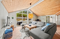 Med masser af naturligt lys og højt til loftet skaber sommerhusets indretning en følelse af luftighed og rummelighed, hvilket gør det til det ideelle sted for både mennesker og hunde at slappe af og nyde hinandens selskab.