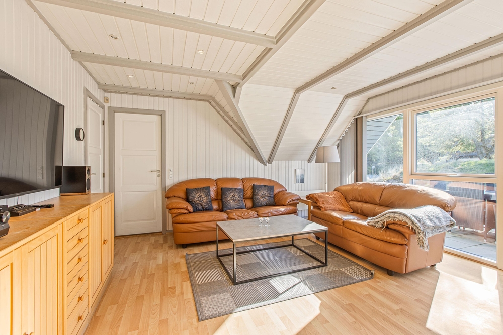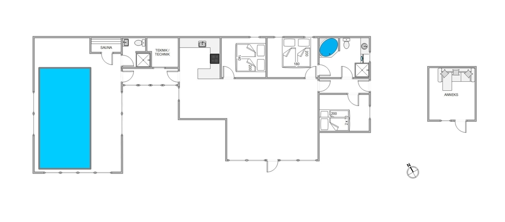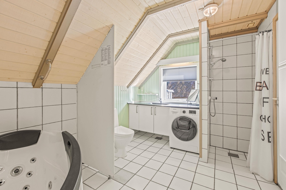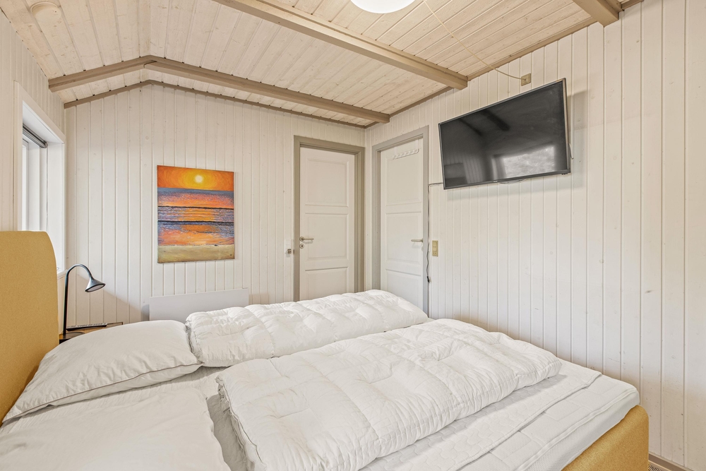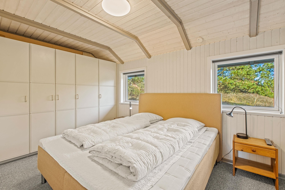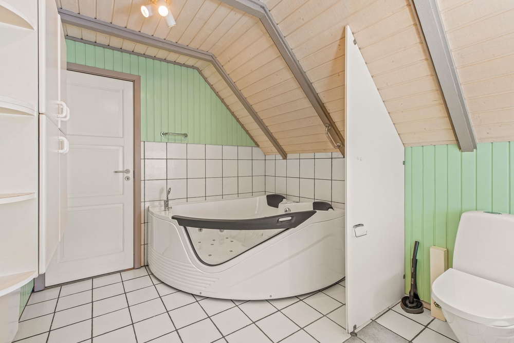 Sovepladserne fordeler sig på 3 soveværelser i huset samt 1 soveværelse med sovesofa i annekset og gulvvarme. Der findes an barneseng til de helt små feriegæster. Der er 2 komplette badeværelser også med gulvvarme, hvor der er spabad i det ene.