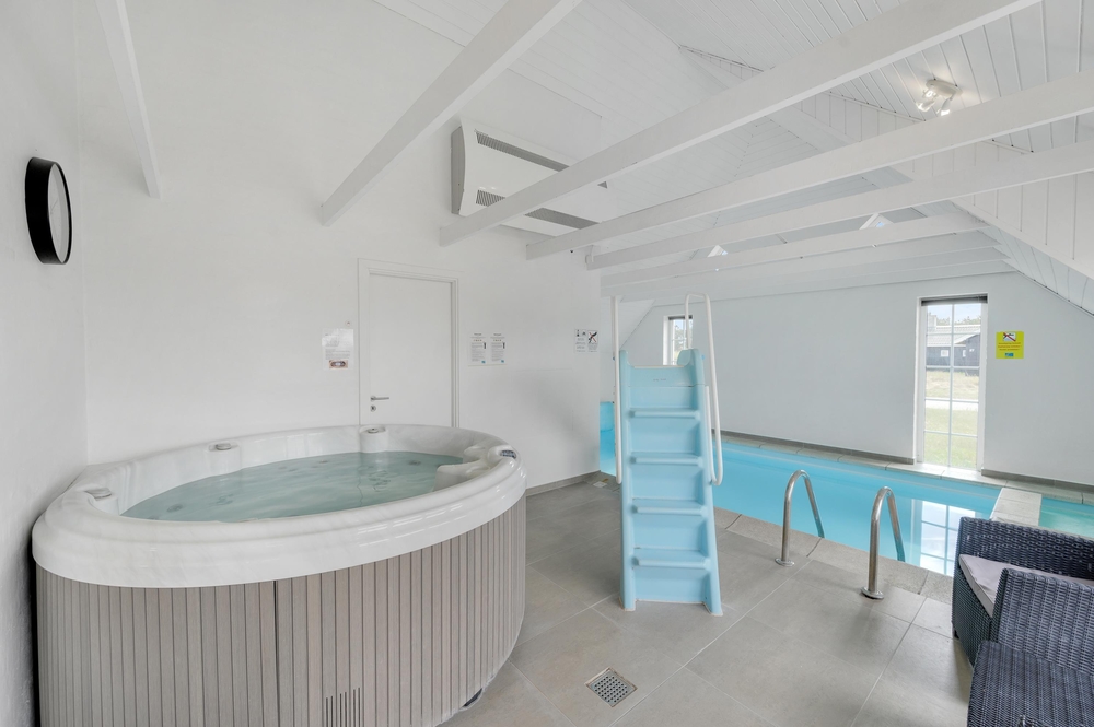 Dette sommerhus på Wolle Friks Vej 12A er yderst veludstyret og her kommer I ikke til at mangle noget. Dette feriehus byder på en 17m2 stor pool, der indbyder til mange timers sjov og leg for både børn og voksne. For dem, der har brug for fuldstændig afslapning, er der både sauna og tømmespa til rådighed.