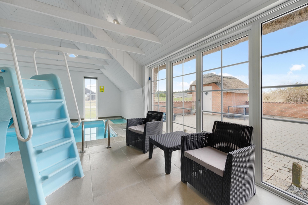 Dejligt og lyst poolhus med plads til den store familie. Sommerhuset der er beliggende på Wolle Friks Vej 12A råder over en stor og god poolafdeling med swimmingpool med energibesparende varmepume, spabad og sauna. Her er der i den grad mulighed for en herlig ferieoplevelse, hvor både afslapning og aktiviteter går op i en højere enhed. Dette rummelige sommerhus tilbyder alt, hvad hjertet begærer, og endda lidt mere til.