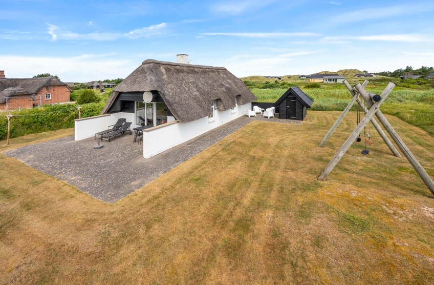 Den store have vil uden tvivl være til stor glæde for såvel to- og firbenede feriegæster. I haven er der et gyngestativ til børnene, som helt sikket vil falde i god jord hos dem. Sommerhuset ligger i rolige omgivelser, så I kan virkelig nyde den vestjyske fred og natur, når I er i haven og på terrassen.